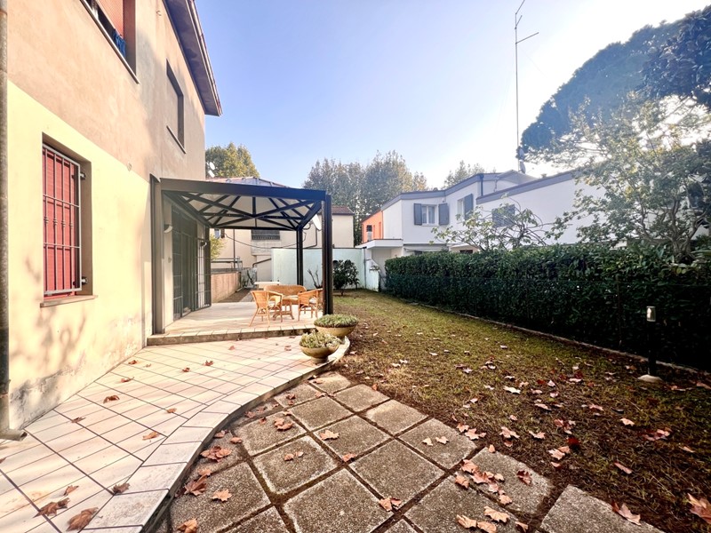 A Cesenatico Levante, in una posizione esclusiva a pochi passi dalla spiaggia, proponiamo in vendita un appartamento al piano terra con ingresso indipendente e giardino privato di 220 mq, situato in un contesto bifamiliare.