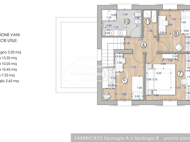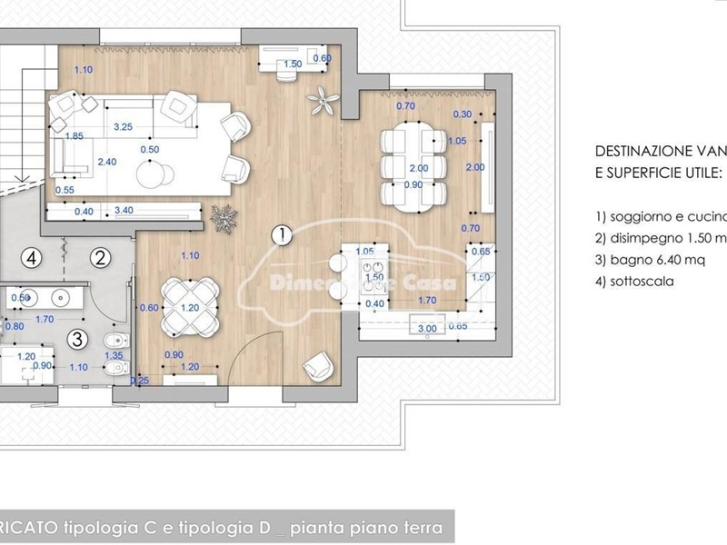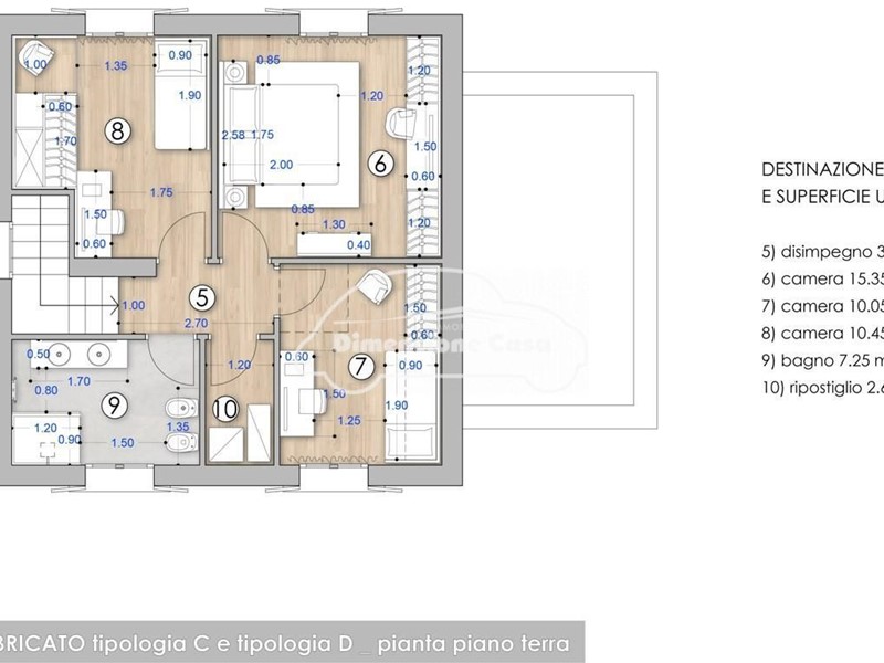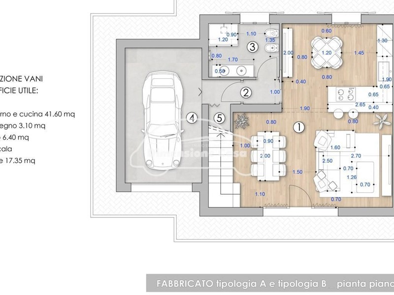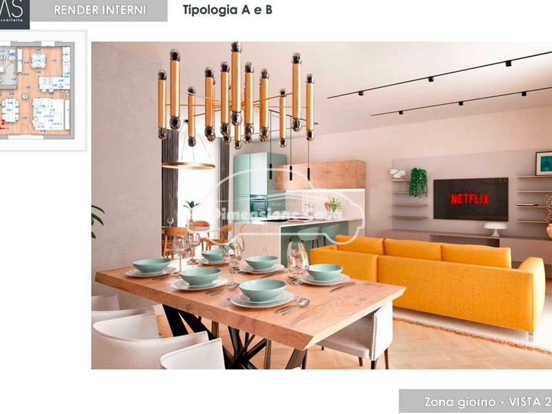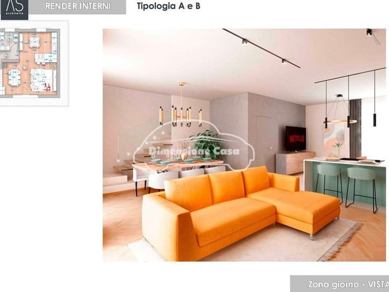 Con una superficie utile di 100mq, si compongono al piano terreno da ampio open space di 42mq, bagno finestrato e ripostiglio - lavanderia; al piano primo camera matrimoniale, due camere di oltre 10mq, bagno finestrato e ripostiglio.