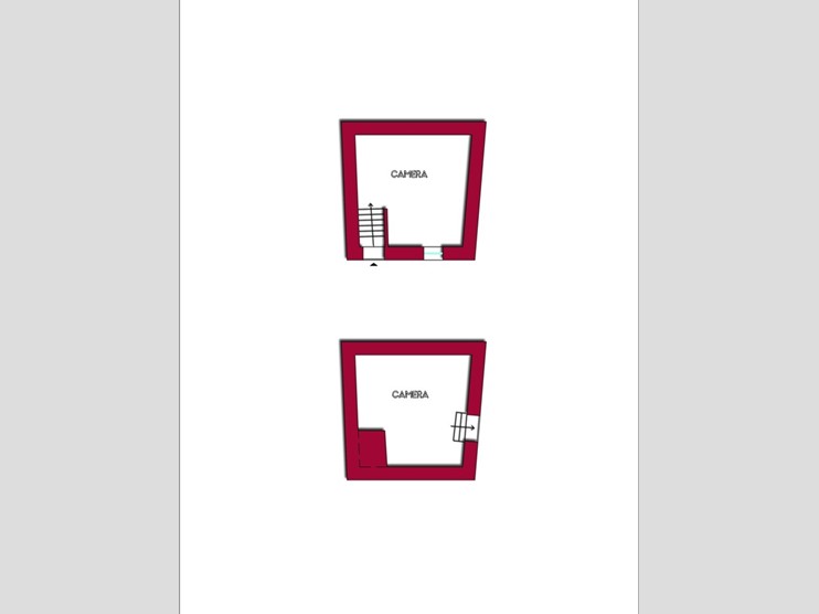 Ogni fabbricato si sviluppa su due livelli per un totale di 65 mq ciascuno, con un potenziale di rinnovamento e ampliamento unico. Demolendo sia il tetto che i solai permetterebbe di aumentare la volumetria e, perché no, creare un suggestivo soppalco a vista, valorizzando ulteriormente lo spazio.