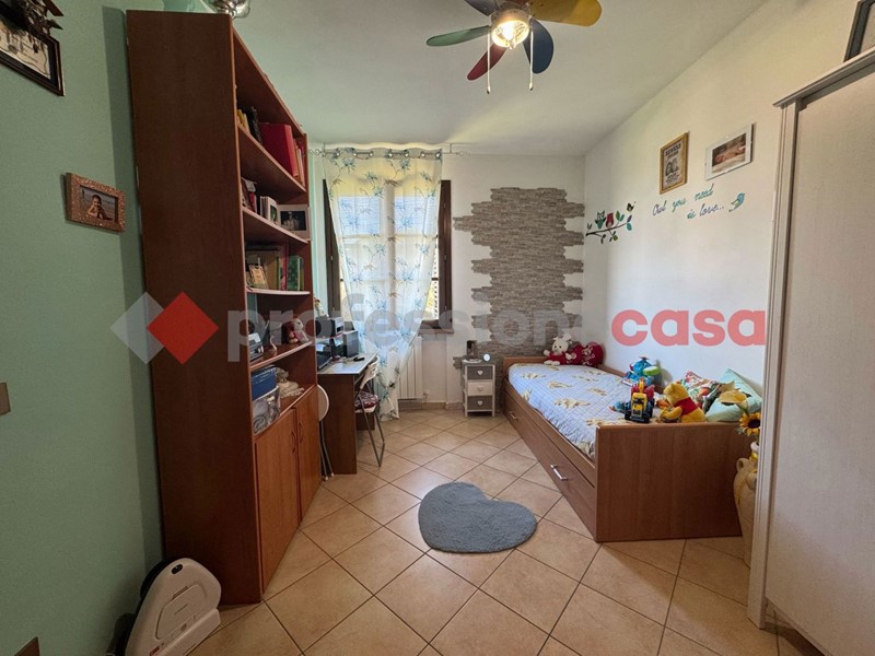 La zona notte, separata da un disimpegno, comprende una spaziosa camera matrimoniale, un'ampia camera media e un bagno finestrato, ben rifinito e luminoso.