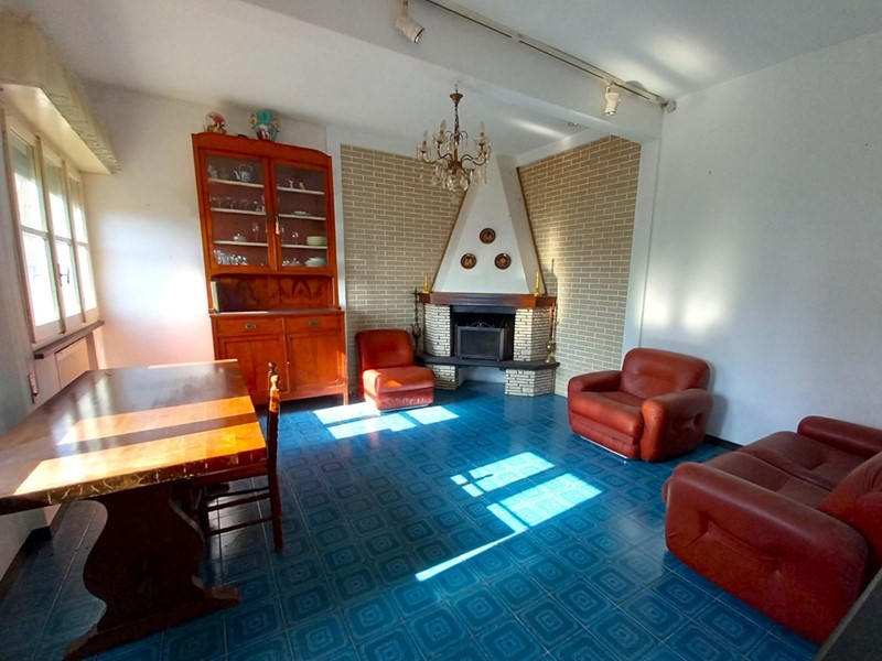 Al piano terra si trova un grande locale ad uso soggiorno/taverna con caminetto, un cucinino, un bagno, oltre all'ingresso, ad una veranda, un ripostiglio e una porzione di giardino