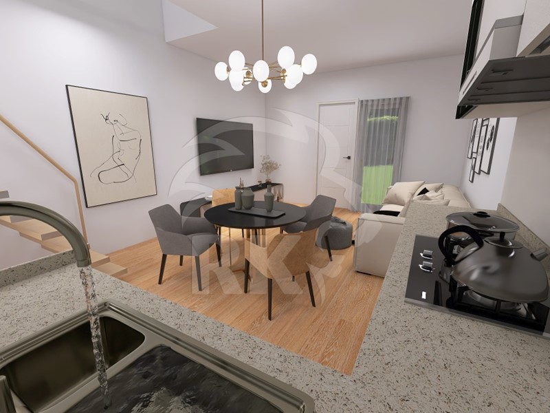 SOLUZIONE NR. B4 - SEMINDIPENDENTE - A SCHIERA (DUE LIVELLI - PIANO TERRA) - Accesso indipendente all'unità al piano terra, ingresso su soggiorno con angolo cottura, una camera matrimoniale, una cabina armadio, ed un bagno non finestrato. Al secondo livello una ulteriore camera matrimoniale. Corte di accesso all'unità e terrazzo al secondo livello.