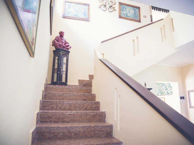 Un’elegante scala conduce al piano superiore, dove si trova la zona notte, caratterizzata da un secondo camino, cinque luminose camere da letto, due bagni e due terrazzi panoramici. All’ultimo piano, una mansarda abitabile ospita un’ulteriore camera con bagno privato. Fornita di climatizzatori in tutte le stanze ed è abitabile da subito, senza necessità di alcuna ristrutturazione.