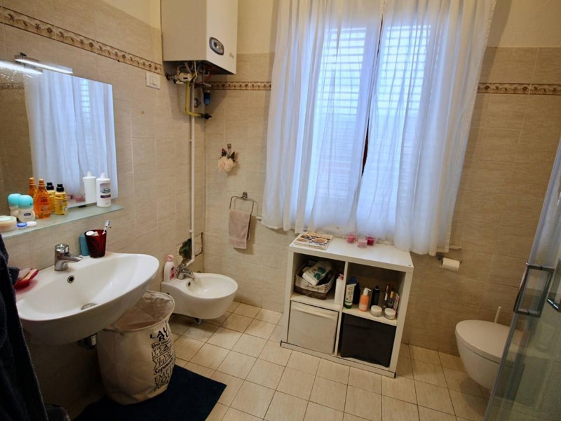 L'appartamento ci accoglie al suo interno tramite l'ampio ingresso/disimpegno grazie al quale si accede alla zona giorno, composta da soggiorno con cucina a vista e comoda terrazza abitabile ad oggi adibita in parte a zona lavanderia ed in parte a zona relax per poter godere di uno spazio esterno esclusivo e riservato. Il bagno principale è ampio ed è dotato di doccia e finestra; nel reparto notte troviamo due grandi e spaziose camere matrimoniali di cui una con ulteriore bagno (privato) completo di tutti i sanitari oltre ad una comoda doccia.