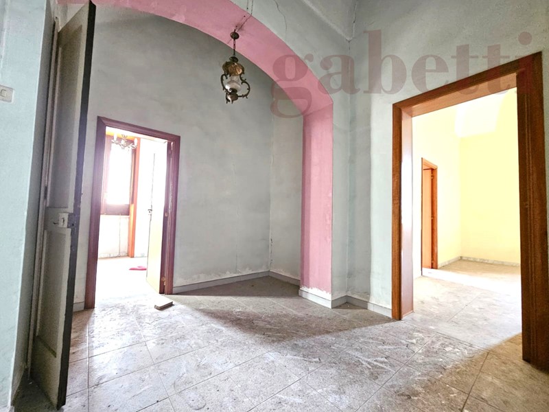 A Copertino, in zona centro si vende appartamento al primo piano, da ristrutturare, composto da cinque vani con volte a stella e a botte, per un totale di circa 110 mq. Inoltre, completano l'abitazione due balconi con cornici in pietra leccese. L'immobile è privo di servizi e cucina. Area solare di proprietà. Cod. Rif. CO 334c