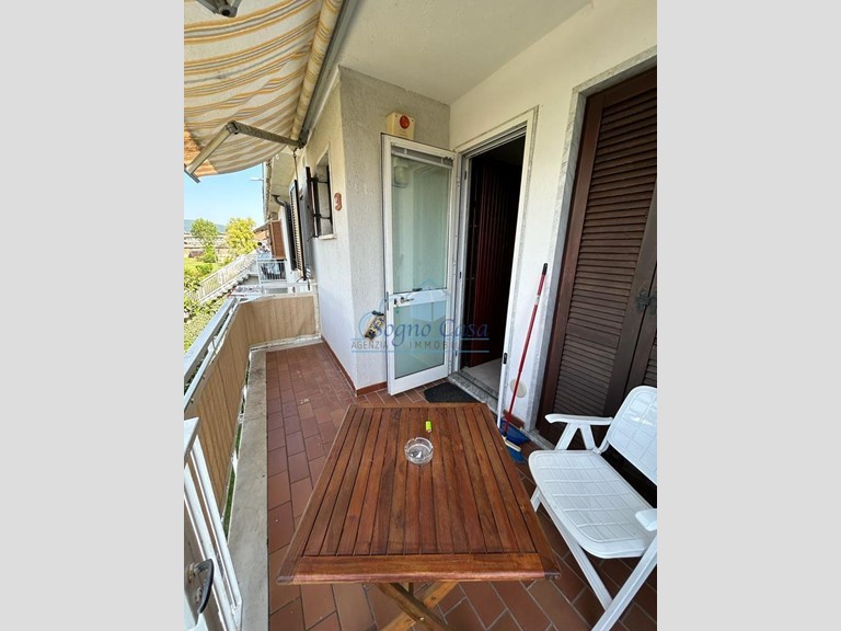 L’ingresso si apre su un accogliente terrazzino che conduce a un ampio soggiorno, affiancato da un pratico cucinotto. La zona notte offre una spaziosa camera matrimoniale con balcone privato e un bagno finestrato dotato di doccia.