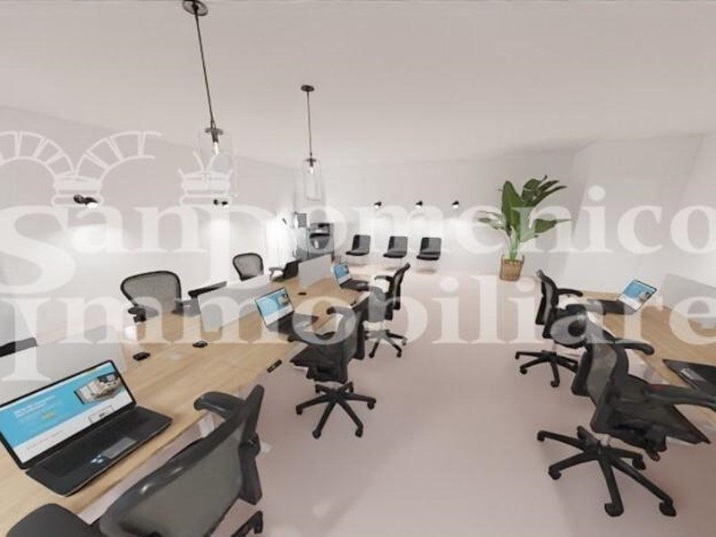 L'ufficio è posto al primo piano di un piccolo condominio composto da altri uffici, attraverso il vano scala a comune si raggiunge il primo piano, dove troviamo l'ingresso principale, in ampio ed unico vano con bagno.