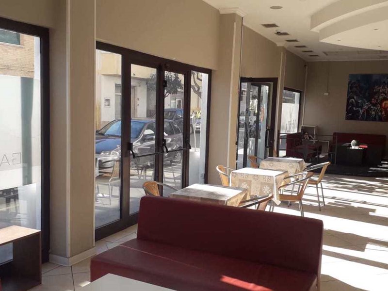 L'immobile si presenta all'esterno con quattro grandi vetrine, entrando ci accoglie un meraviglioso e maestoso banco bar attrezzato e circondato da una bella sala con tavolini, sedie e divanetti, dietro troviamo una sala che ha la predisposizione per la cucina, un bagno e antibagno per la clientela e un bagno per il personale.