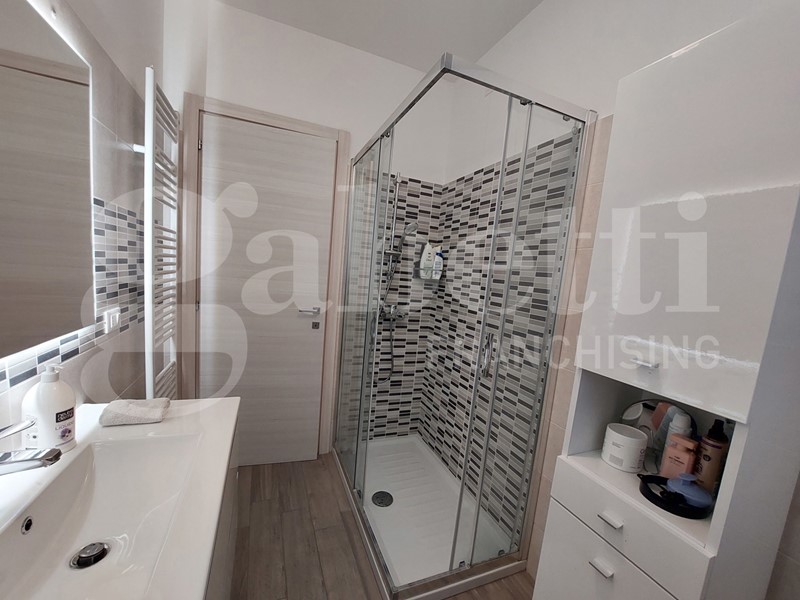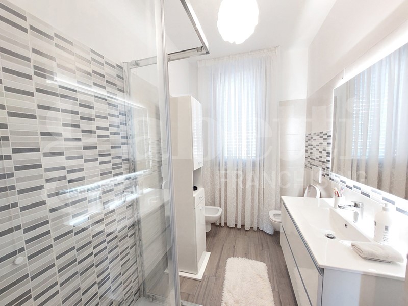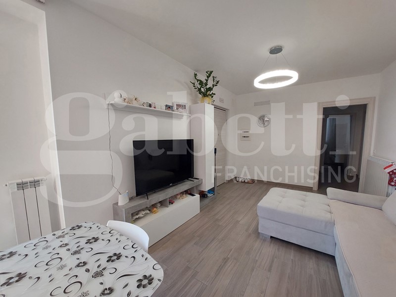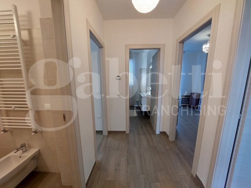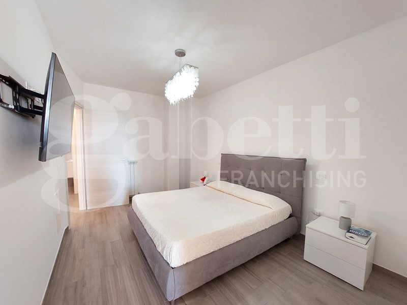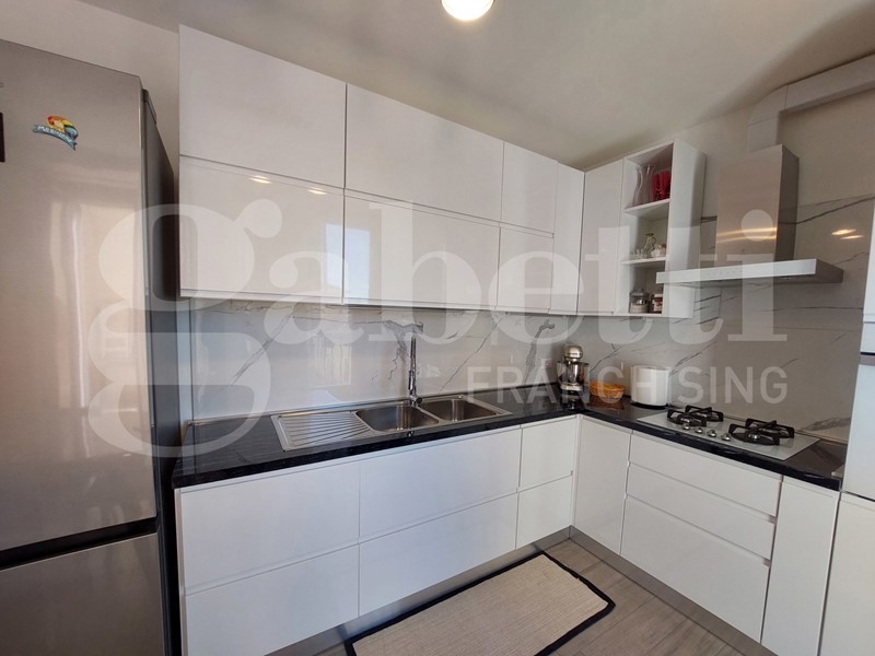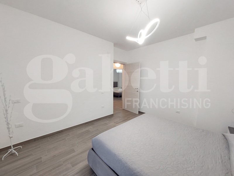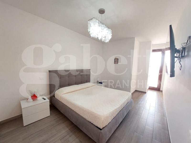 L'immobile sito al primo piano con ascensore, arredato con gusto e cura, offre una superficie di 110 mq e si trova in un edificio di recente costruzione del 2018. Composto da: ingresso su ampio e luminoso soggiorno con cucina a vista e ampio terrazzo con vista panoramica ideale per momenti di relax all'aperto, un disimpegno divide due camere matrimoniali, una cameretta, due balconi e due bagni.
