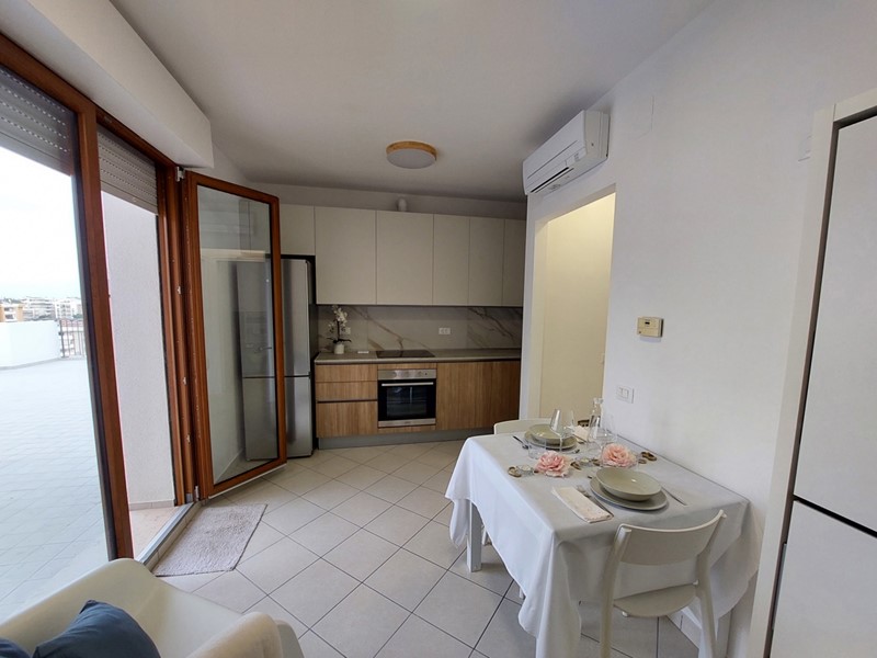 Rif.T891 ALBA ADRIATICA: In zona strategica, dalla vista mare e montagne, l'agenzia immobiliare Gabetti è lieta di presentare Attico, completamente ristrutturato, e finemente arredato, posto al 6°piano di una palazzina del 2006 e lavori del bonus 110% appena terminati. Internamente l'appartamento tutto ristrutturato è composto da: ingresso su soggiorno con cucina "Stosa" di altissima qualità, armadio su misura che si trasforma in letto a castello, bagno finestrato con doccia e sanitari sospesi, camera matrimoniale con affaccio su balcone esposto a sud. Punto di forza, ovviamente, è il meraviglioso terrazzo esposto principalmente ad Est di circa 140 mq con possibilità di realizzare una veranda a proprio piacimento.