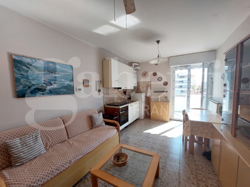L'immobile sito al 3° piano servito d'ascensore è cosi composto: ingresso su ampio e luminoso soggiorno con angolo cottura e accesso su grande terrazzo, esposto ad Est con Vista Mare, una camera matrimoniale e un bagno con doccia.