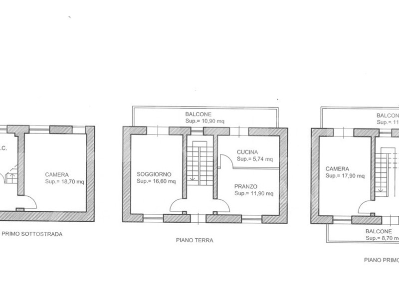 Piano terra: ingresso su disimpegno, un soggiorno con balcone esposto a sud/est , una sala pranzo, una cucina separata con balcone.