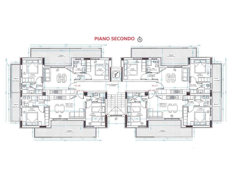 Tutti gli appartamenti, da progetto, sono cosi composti: ingresso su soggiorno con angolo cottura, due camere matrimoniali, due bagni, ampia terrazza e balcone, dotati di finiture di altro livello con facoltà di chi acquista in corso di costruzione di personalizzare gli interni.
