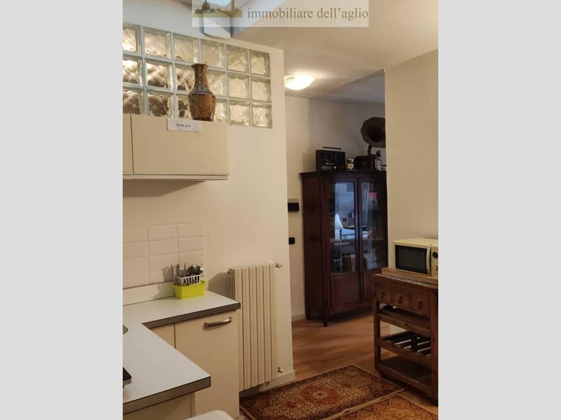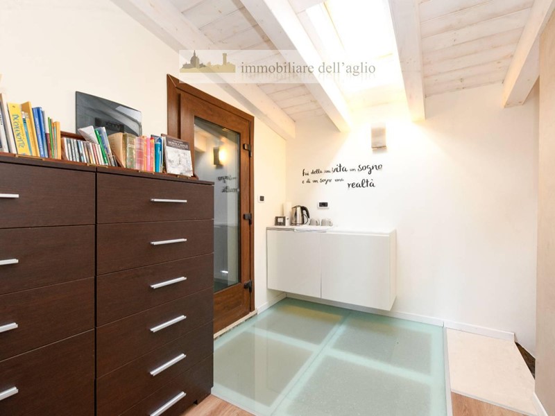 Al piano primo si accede da una luminosa scala con grandi vetrate: un ingresso precede la zona notte dove troviamo un cucinotto, 2 camere matrimoniali di cui una con grazioso terrazzino che si affaccia sulla corte interna, due bagni.