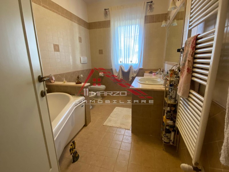 Salendo al primo piano, l'appartamento offre un ampio soggiorno con balcone, un tinello con angolo cottura, due camere matrimoniali e un bagno. La villa è circondata da un incantevole giardino di 1.000 m² con due ingressi carrabili, offrendo la possibilità di dividere la proprietà in due porzioni separate. Le facciate e gli infissi sono stati recentemente rifatti grazie alle agevolazioni del 110%, garantendo efficienza energetica e comfort.