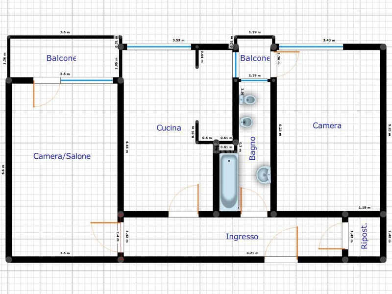 E' composto da due ampie camere, cucina con ampio cucinotto, bagno, 3 balconi, ripostiglio e soffitta.