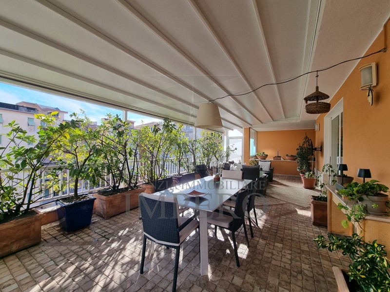 In posizione centralissima, a pochi passi da tutti i servizi, proponiamo un prestigioso attico con superattico, situato in una palazzina di soli quattro piani. La proprietà, unica nel suo genere, regala una vista panoramica sul mare e sulla città, offrendo un connubio perfetto tra lusso e funzionalità. L’appartamento si apre con un ingresso che conduce alla cucina abitabile e a un ampio salone, luminoso e accogliente. La zona notte comprende quattro camere da letto, tre bagni e uno studio. Un elegante terrazzo perimetrale circonda l’intera abitazione, creando spazi ideali per vivere l’esterno con totale privacy. Dal terrazzo principale, dove si trova l'ingresso della proprietà, una scala esterna porta alla terrazza panoramica sul tetto, vero gioiello della proprietà, dove si trovano una piscina privata, riscaldata e dotata di impianto al sale, cucina estiva, giardino, bagno turco, bagno con doccia e doccia esterna. Il sistema di riscaldamento a gas e le pompe di calore caldo/freddo assicurano un clima perfetto tutto l’anno. Questo spazio è perfetto per godersi il panorama o organizzare momenti conviviali unici. Completa la proprietà un ampio garage, incluso nel prezzo, che garantisce comodità e sicurezza. Questa soluzione abitativa rappresenta un’opportunità rara per chi desidera vivere in una residenza esclusiva, dove eleganza e comfort si incontrano in una location da sogno.