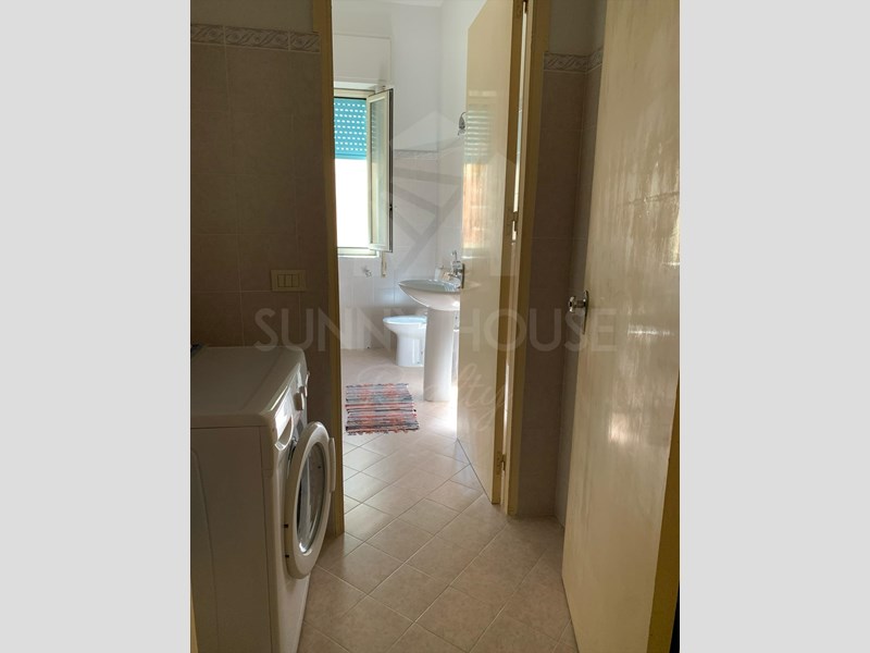 Il pavimento è in scaglie di marmo e gli infissi sono tutti dotati di zanzariere, rendendolo un ambiente funzionale e accogliente. La proprietà è completata da due bagni e un pratico ripostiglio, offrendo tutto lo spazio necessario per un'organizzazione ottimale.