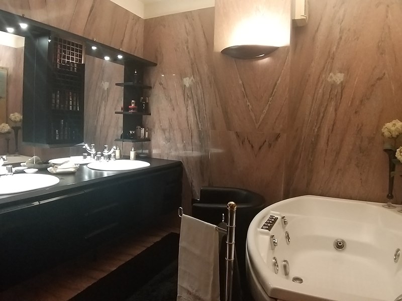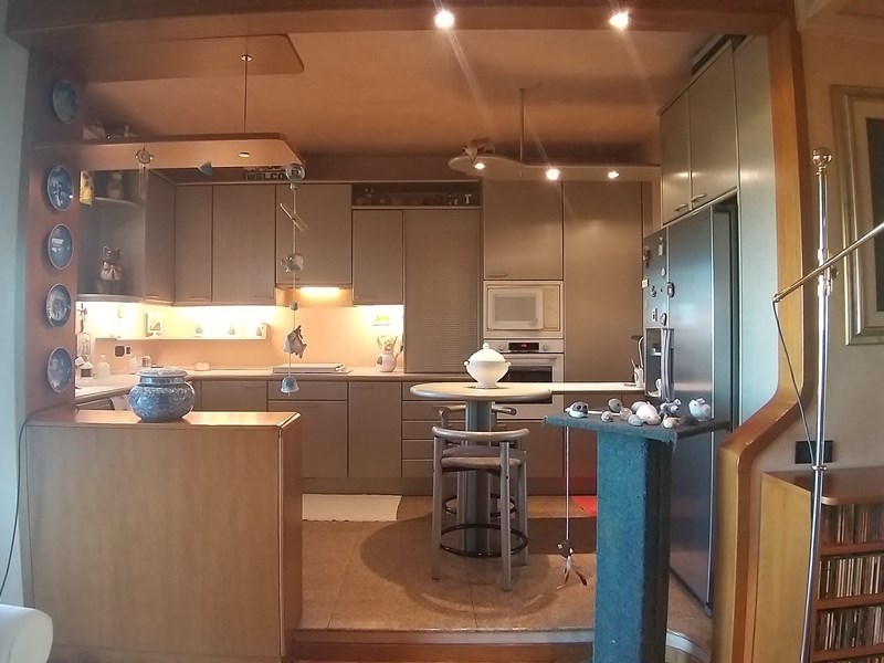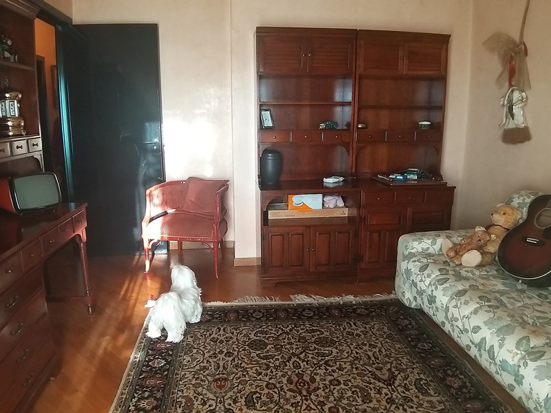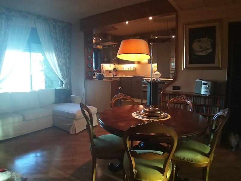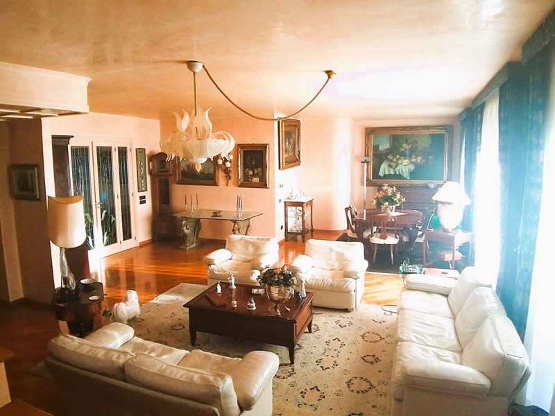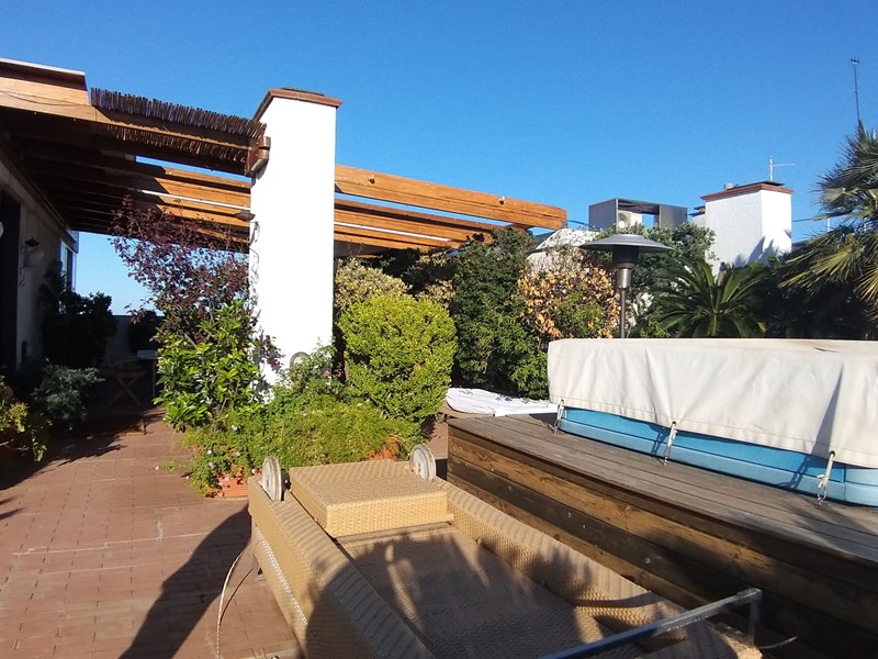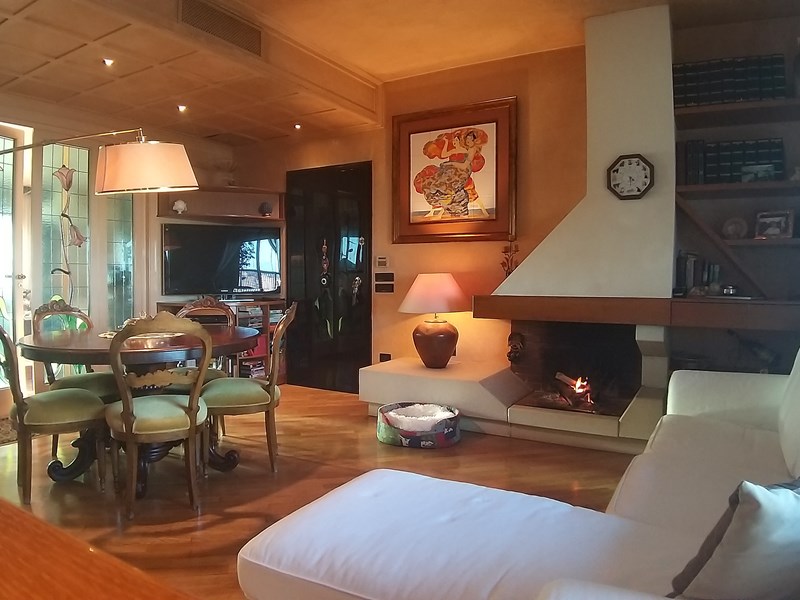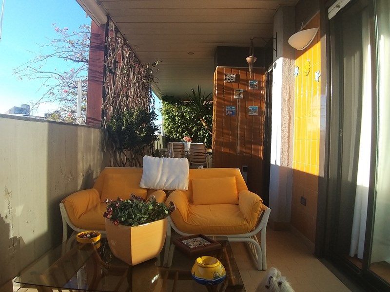 L’ingresso principale apre le porte ad un triplo salone le ampie vetrate conducono sul balcone vivibile arredato , un disimpegno porta allo studio ed al primo bagno, tramite la scala interna si accede ad un altro vano posto al piano superiore che apre all’ampio terrazzo; l’ingresso secondario introduce nella zona living con camino costituita da soggiorno ed ampia cucina , tutta la zona è balconata chiusa parzialmente da vetrate scorrevoli, la zona notte è costituita da due ampie camere da letto, bagno grande con vasca, cabina armadio , due ripostigli, vari armadi a muro sono presenti in casa .