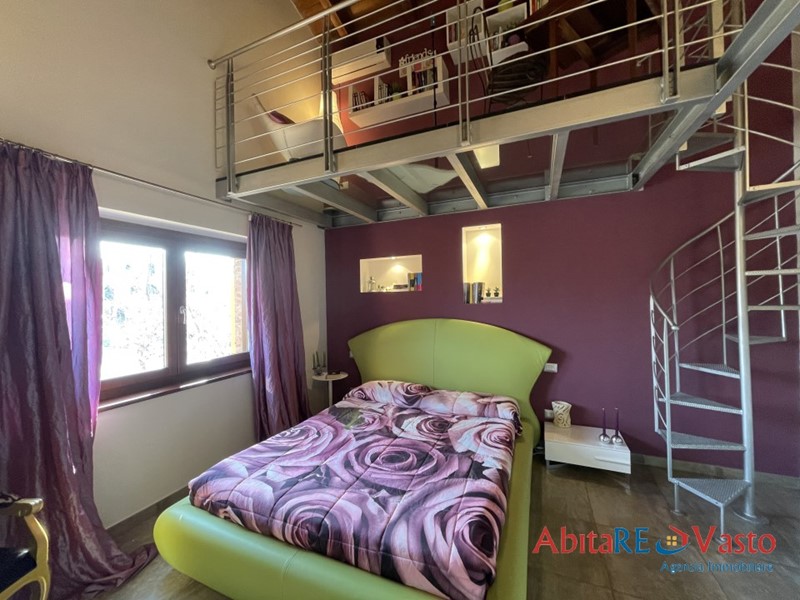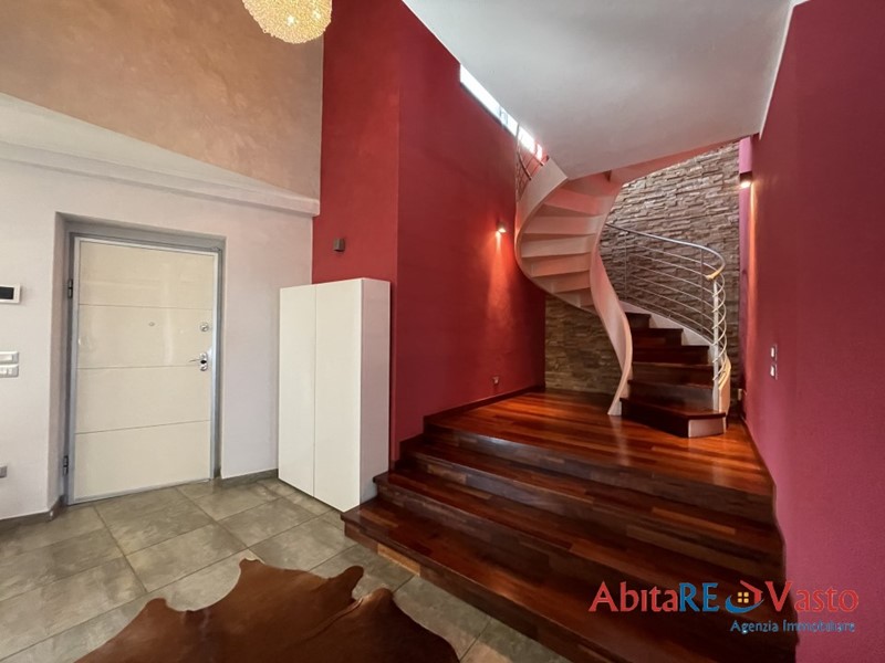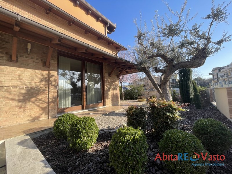 VILLA UNIFAMILARE DI RECENTE COSTRUZIONE A VASTO\n\nQuesta bellissima villa singola in vendita si trova nella splendida città di Vasto, famosa per le sue spiagge cristalline e la sua storia millenaria.\nCostruita nel 2016 l'abitazione si sviluppa su due livelli, offrendo ampi spazi e un'organizzazione ottimale degli ambienti.\nAl piano terra si trova un luminoso e spazioso soggiorno, ideale per trascorrere piacevoli serate in compagnia o rilassarsi dopo una giornata di lavoro.\nLa cucina a vista, di pregiata fattura e dotata di tutti i comfort, è il fulcro della zona giorno ponendosi al centro tra l'area living a la sala pranza.\nSalendo al primo piano, con una pregevole scala elicoidale inserita all'interno di un vano doppia altezza completamente rivestito di marmo delle Alpi, si accede alla zona notte, composta da tre camere da letto, perfette per ospitare una famiglia numerosa o per avere spazio extra per gli ospiti.\nLa camera principale è particolarmente di ampie dimensioni ospita una cabina armadio, le altre due camere sono ideali per i bambini o come stanze degli ospiti.\nLa villa dispone di due bagni moderni e finemente rifiniti, uno al piano terra e uno al primo piano, per garantire il massimo comfort a tutta la famiglia.\nLa proprietà dispone di un giardino privato, ideale per godere del bellissimo clima estivo ed organizzare barbecue o cene all'aperto oltre ad un garage di circa 72 mq, al piano seminterrato e posti auto\nall'interno della corte esclusiva.\nLa villa esternamente presenta della parti di facciate rivestite in mattone faccia-vista mentre il tetto è in legno ventilato che garantisce un'ottimo comfort abitativo.\nL'immobile si presenta in ottimo stato, grazie alla costruzione recente e all'uso di materiali di alta qualità ed è collocato in una zona tranquilla e residenziale, ma allo stesso tempo comoda ai servizi e ai principali collegamenti stradali.\nNon perdere l'opportunità di diventare il proprietario di questa splendida villa singola a Vasto e godere di una qualità della vita ineguagliabile.\nL'immobile è in collaborazione esclusiva con Mediacantieri, con sede a Montesilvano (PE). \n - Maggiori Dettagli: Climatizzato, Ripostiglio, Lavastoviglie, Videocitofono, Rete ADSL, Camino, Sistema di allarme, Porta blindata, Doppio servizio