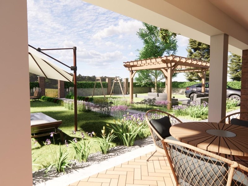 Il bel giardino recintato di circa 700 mq l'abbraccia su quattro lati.