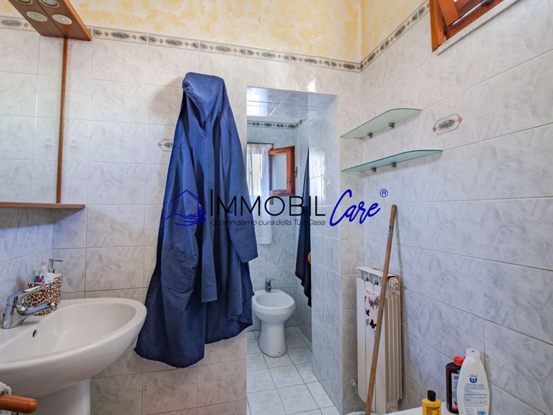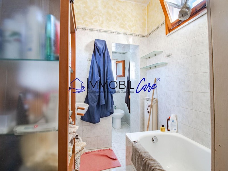 Il bagno, funzionale e curato, è preceduto da un pratico antibagno, mentre un grande ripostiglio adibito a lavanderia offre ulteriore spazio per l’organizzazione domestica.