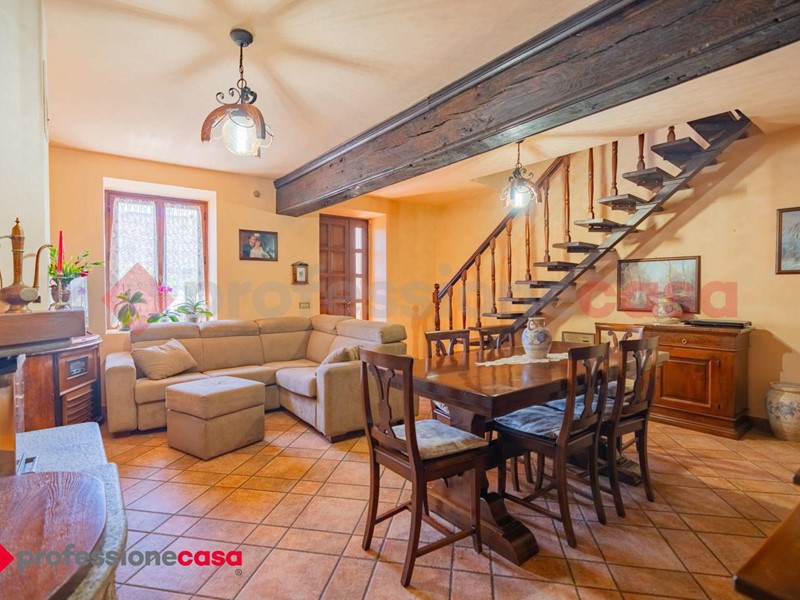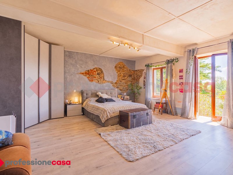 In posizione collinare e dominante a circa 2,5 km dal centro Paese, proponiamo ampio cascinale tipico Piemontese indipendente su tre lati con circa 3.000 mq di giardino in parte piantumato ed in parte cortile pavimentato. Questa affascinante abitazione è un'opportunità unica per chi cerca spazi generosi da godersi sia all'interno che all'esterno. Con 11 locali e 2 bagni distribuiti su una superficie di 350 mq, la proprietà vanta una serie di caratteristiche che la rendono irresistibile. L'immobile è sviluppato su 2 livelli ed è cosi composto: al piano terra troviavo la cucina abitabile, il soggiorno, le 4 camere matrimoniali e il bagno. Al piano primo: il disimpegno con sfogo su ampio terrazzo vivibile, 3 ulteriori camere matrimoniali e il bagno . Al piano interrato l'ampia cantina con soffitto a volte in pietra. Cortile in autobloccanti con tettoia per 2 posti auto, zona dehore con forno e vasca con sorgente d'acqua. L'abitazione è dotata di pannelli fotovoltaici (4,5kw) e pannelli solari con accumulo da 330 L.