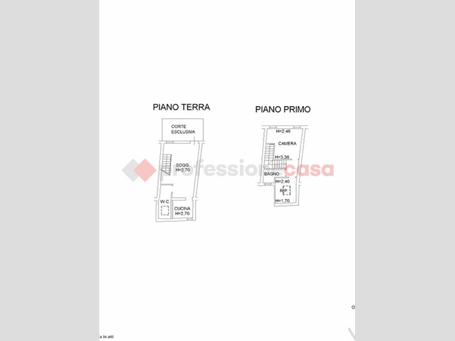 L'abitazione è divisa su due piani, composta da ampia zona giorno con soggiorno, angolo cottura e bagno al piano terra.