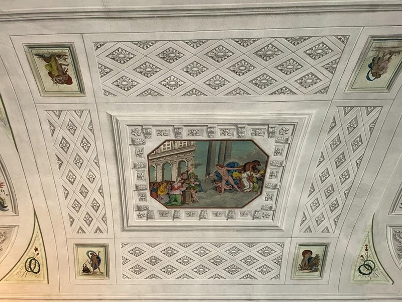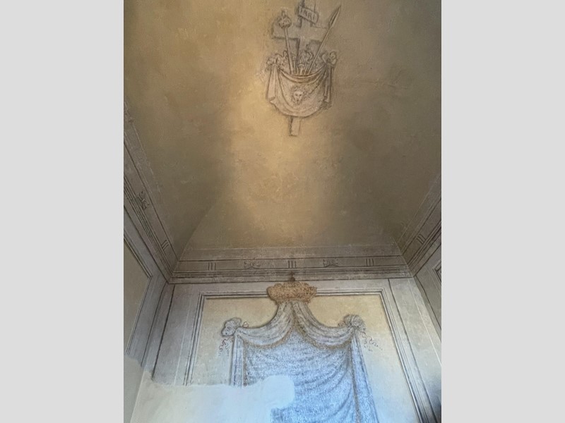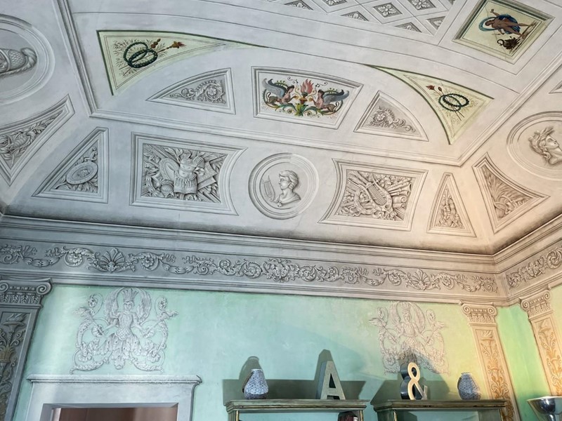 L'edificio si sviluppa su due piani principali per una superficie complessiva di circa 490 mq, ed è impreziosito da eleganti saloni con soffitti a volta decorati, una caratteristica che contraddistingue tutti gli ambienti del piano nobile e diversi locali del piano terra.