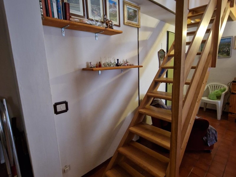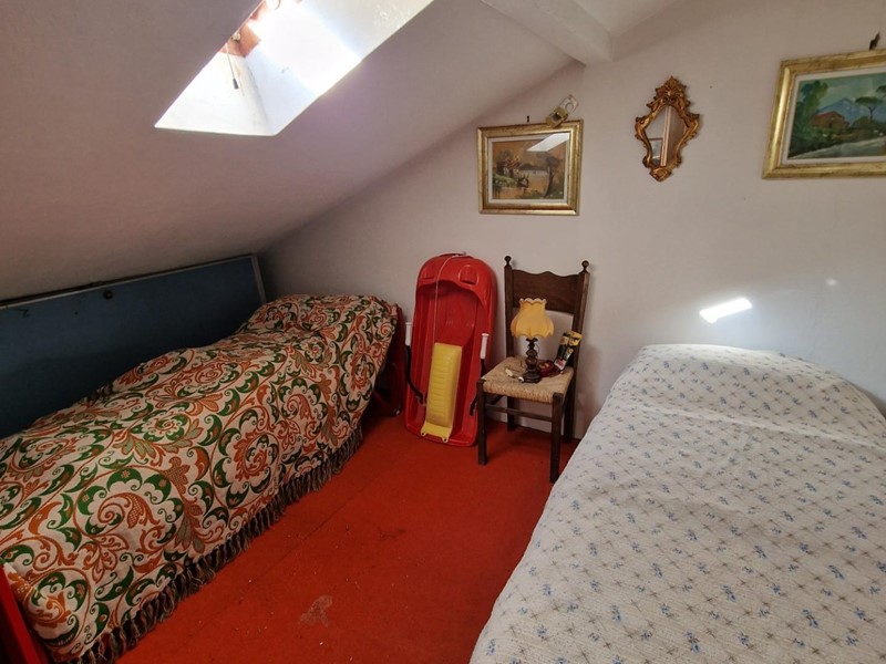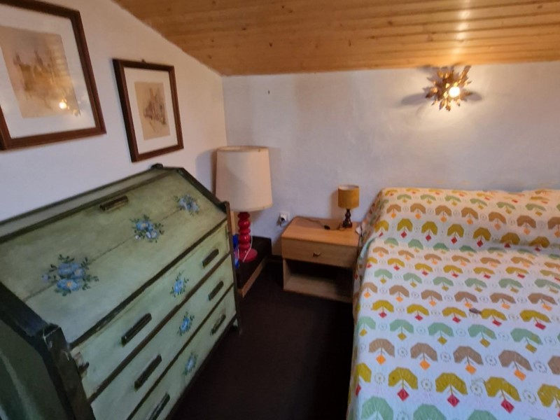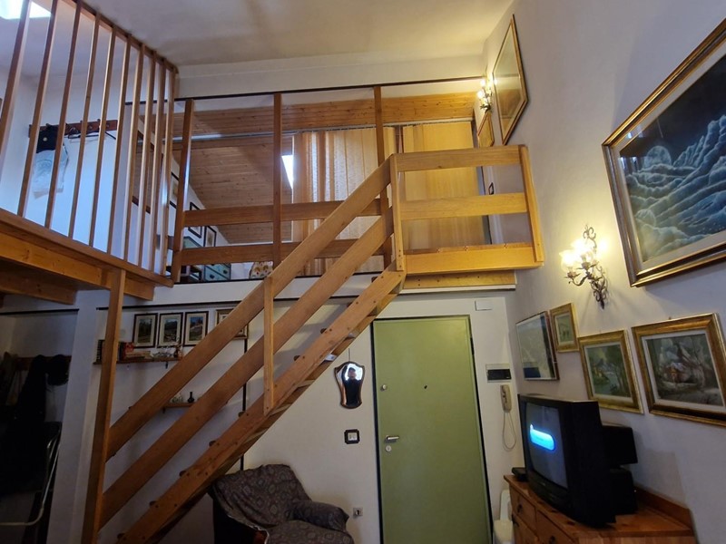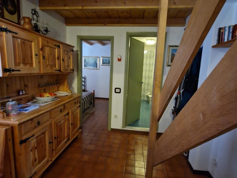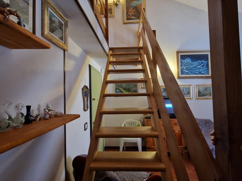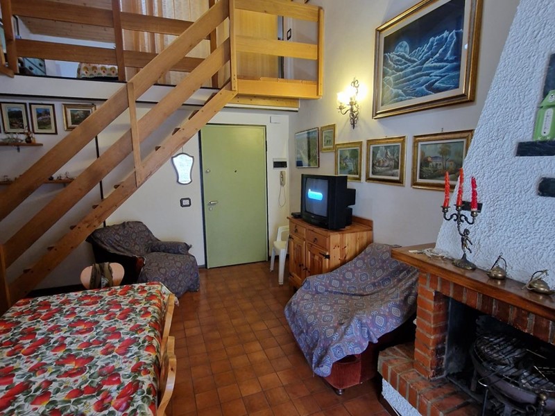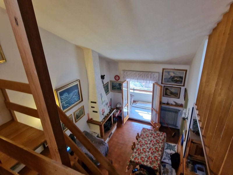 L'immobile è composto da un luminoso soggiorno con camino, ideale per riscaldarsi durante le fredde serate invernali, un pratico cucinotto, un ampio balcone, tre camere da letto di cui due soppalcate e mansardate, e un bagno.