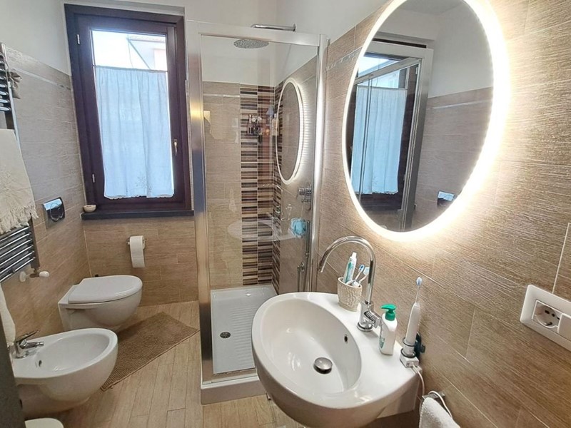 Dal Soggiorno tramite scala interna si accede al piano seminterrato, dove troviamo una bella Taverna con Bagno regolarmente accatastato e collegamento diretto al Garage. Gli impianti elettrici sono stati completamente rifatti, è presente una caldaia a pellet che integra il riscaldamento dell’appartamento e l’acqua sanitaria per la caldaia a metano. L’appartamento è dotato di un climatizzatore. L’immobile è termoautonomo a metano con integrazione tramite termostufa, una soluzione funzionale e ottimamente rifinita.