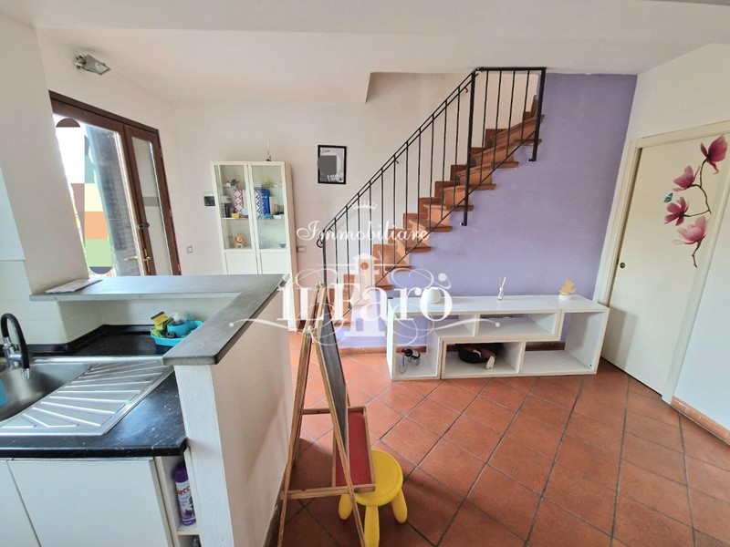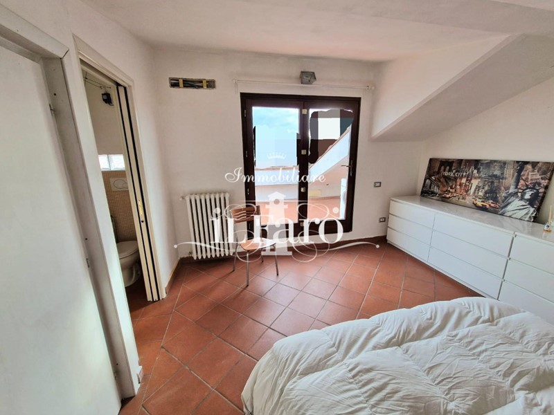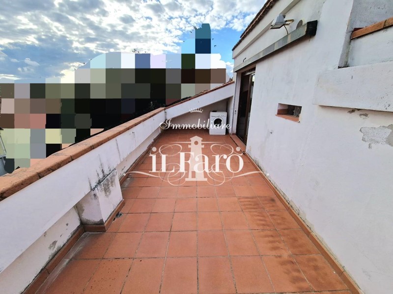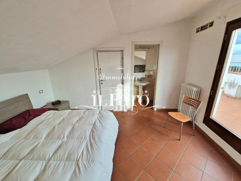 Salendo la scala esterna a comune, tramite un balcone a comune si accede all'immobile. Entrando al piano primo è composta da: ingresso direttamente nell'ampia ampia zona giorno OPEN SPACE con angolo cottura, bagno con vasca e una camera da letto singola - collegata ad un BALCONE TERGALE e provvista di GUARDAROBA finestrato. Dalla zona giorno, salendo una comoda scala a vista, si raggiunge l'ampio sottotetto, attualmente utilizzato come camera matrimoniale con bagno di servizio e collegato ad una meravigliosa TERRAZZA A TASCA ABITABILE.