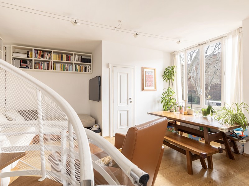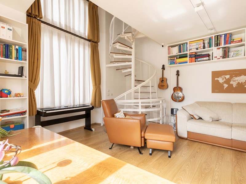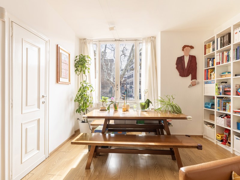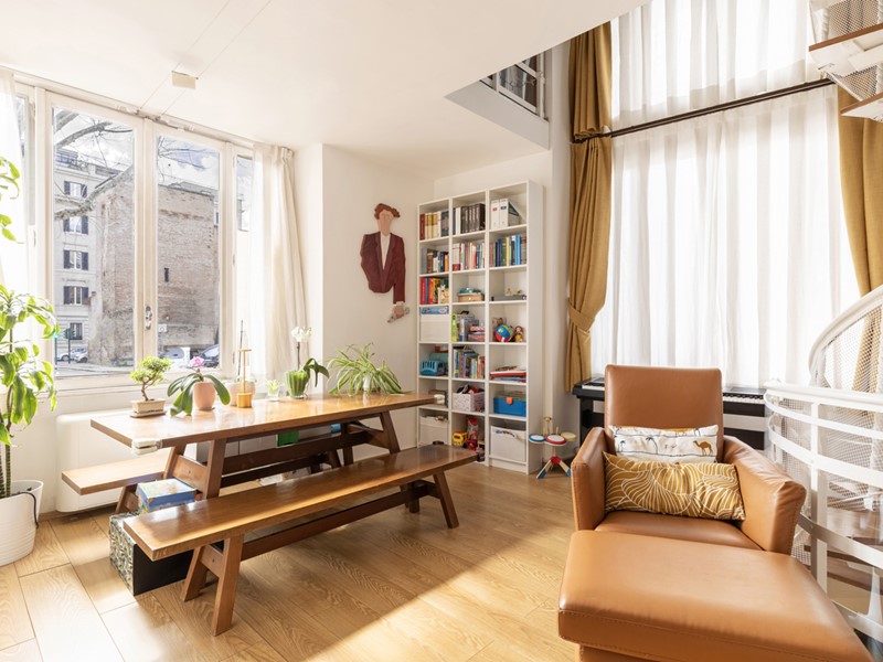 - Piano terra spazio elegantemente adibito a sala pranzo/soggiorno con due ampie finestre che affacciano esternamente su Corso D'Italia e Via Po.