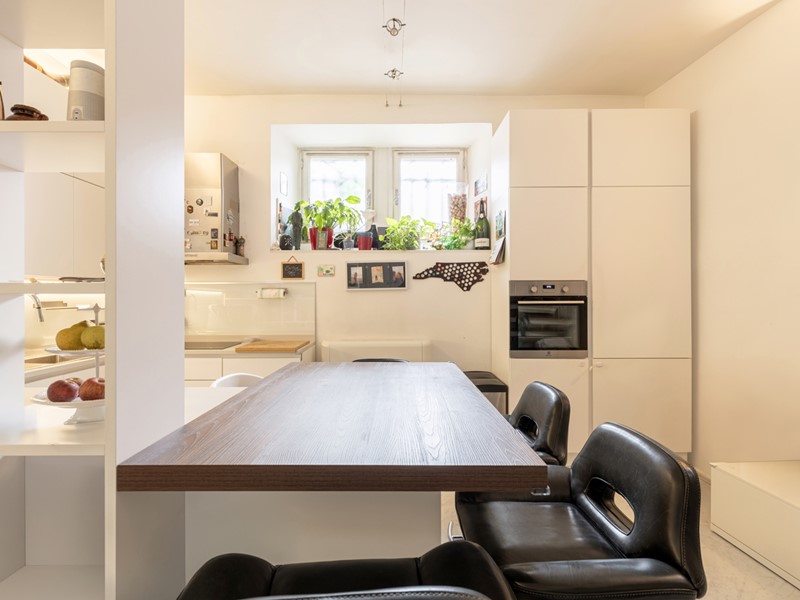 - Piano S1 in cui troviamo cucina dotata di ampie finestre che rende l'ambiente luminoso;