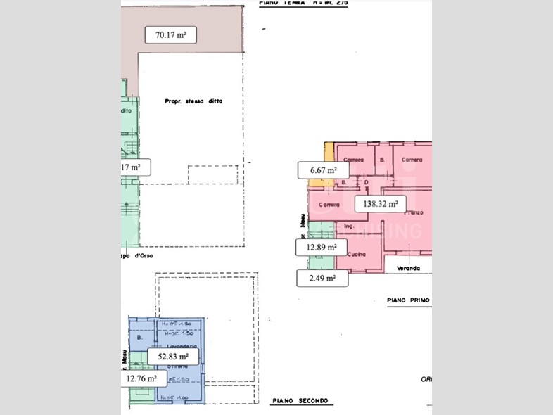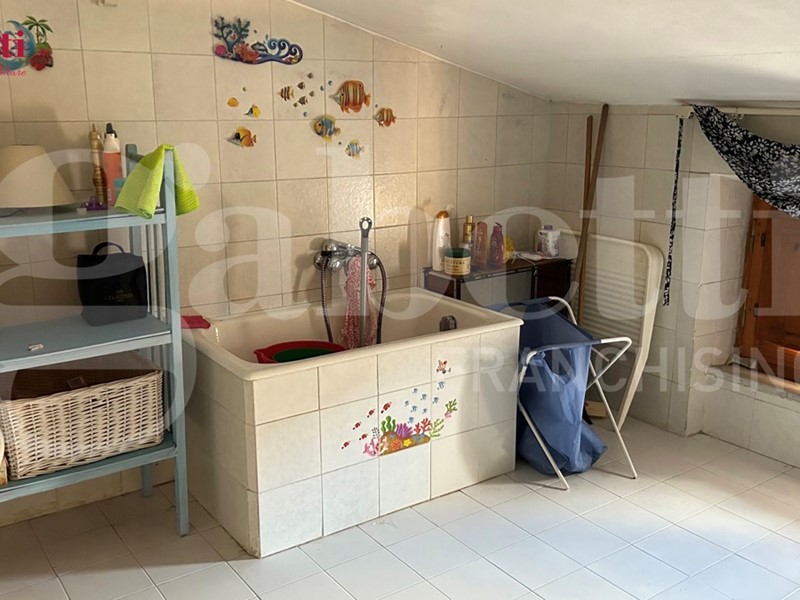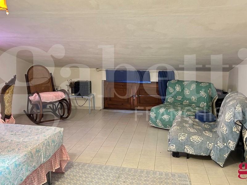 Al piano primo trova spazio l'abitazione, composta da una bella cucina abitabile e luminosa, grande salone con ottima esposizione e veranda da cui godere anche uno scorcio di vista mare, tre camere e bagno.