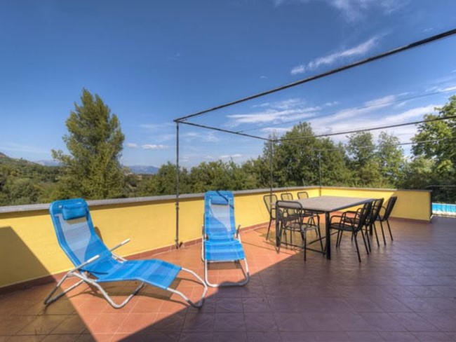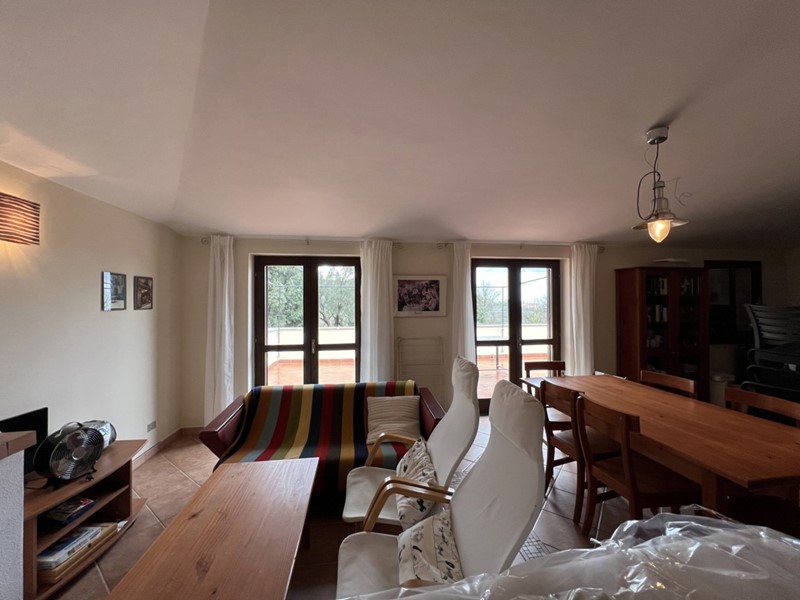 Il primo piano ospita altri due appartamenti simili, caratterizzati da un luminoso soggiorno con angolo cottura e camino, che si aprono su terrazzi spaziosi, perfetti per godere delle viste panoramiche e delle serate estive. Ogni appartamento dispone di due camere da letto e un bagno, garantendo comfort e privacy agli ospiti.