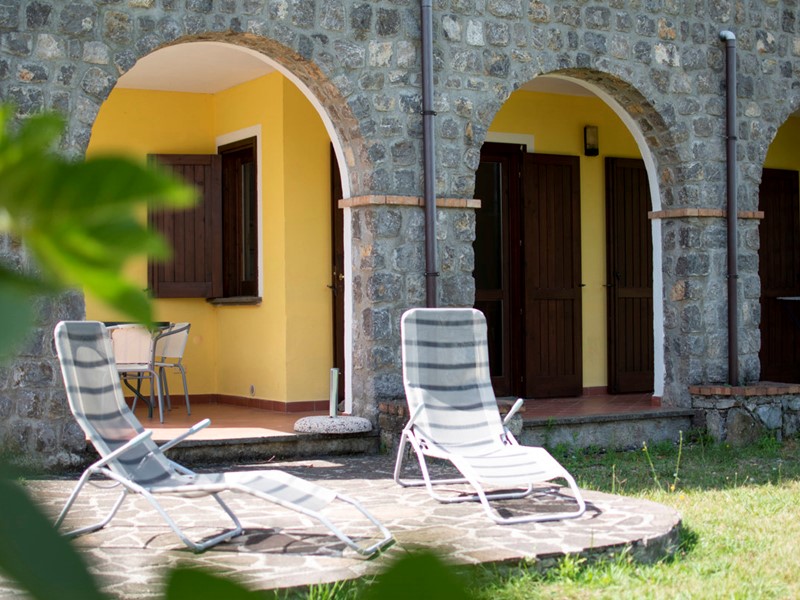 Al piano terra, due appartamenti accoglienti offrono un ambiente confortevole con soggiorno, angolo cottura e camino, che si affacciano su ampi portici, ideali per rilassarsi all'aria aperta. Ogni appartamento comprende una camera da letto, un bagno e un ripostiglio, offrendo spazio sufficiente per una coppia o una piccola famiglia.