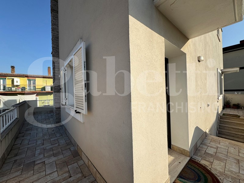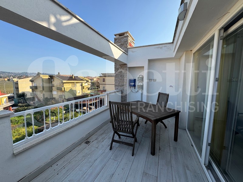 Costruito nel 2019, l'edificio conta 4 unità e non vi sono spese condominiali da sostenere. L'appartamento è posto al 1°piano bilivello circondato dal balcone perimetrale dalla quale accediamo alla casa. Internamente composta da Soggiorno, Camera da letto, Bagno al primo piano, mentre la zona giorno è al piano superiore con una terrazza a livello panoramica sui Castelli Romani ideale per vivere momenti di relax o in compagnia.