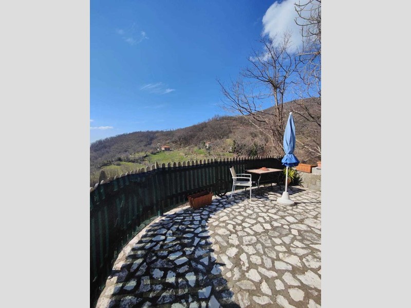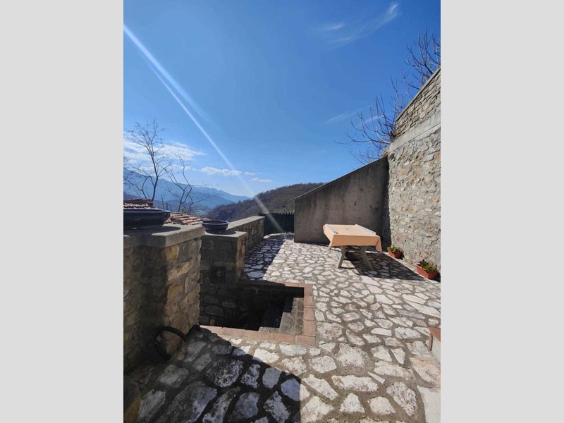 Nestled in the heart of the charming village of Regnano Castello, in the municipality of Casola in Lunigiana, this beautifully restored stone semi-detached terraced home offers a rare blend of rustic elegance, panoramic views, and peaceful seclusion. With a breathtaking outlook over the majestic Apuan Alps, this property captures the poetic essence of northern Tuscany. Spread across two levels and offering a total of approximately 174 sqm of living space, the home features 8 rooms that have been carefully restored with original details, including exposed wooden beams, stone walls, and a cozy fireplace. Every corner of this residence tells a story of authenticity and warmth. On the first floor, the entrance leads to a bright living room, a charming dining area, and a spacious kitchen with a fireplace—ideal for evenings by the fire. On the second floor, accessible via an internal staircase, there are two elegant bedrooms with exposed beams and a bathroom with shower. On the ground floor, also accessible internally, there’s an additional bedroom, perfect for guests or as a creative space.The property includes a private courtyard, two cellars, a beautiful panoramic terrace with barbecue area, a balcony, and a private garden with the possibility of installing a small pool—perfect for enjoying the long Tuscan summers. Utilities are all connected, and the home offers Wi-Fi, double-glazed windows, and independent air heating via the fireplace, as well as a methane boiler for hot water. Please note: The house is located at the very end of the village, approximately 400 meters on foot from the main public parking area. The narrow village road is accessible only by small vehicles, which can reach about 100 meters from the property. This special location ensures absolute tranquility and breathtaking views, ideal for those who appreciate silence, nature, and a lifestyle immersed in tradition. Whether you're looking for a romantic retreat, a character-filled holiday home, or a primary residence in one of Tuscany’s most untouched corners, this unique property in Regnano Castello is a rare opportunity to live where time stands still, and every view feels like a painting.