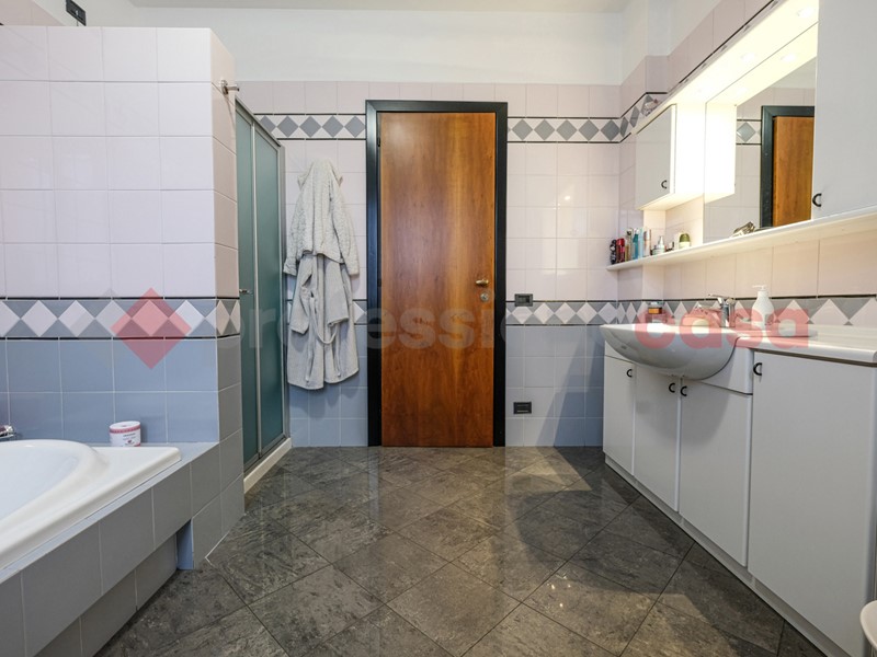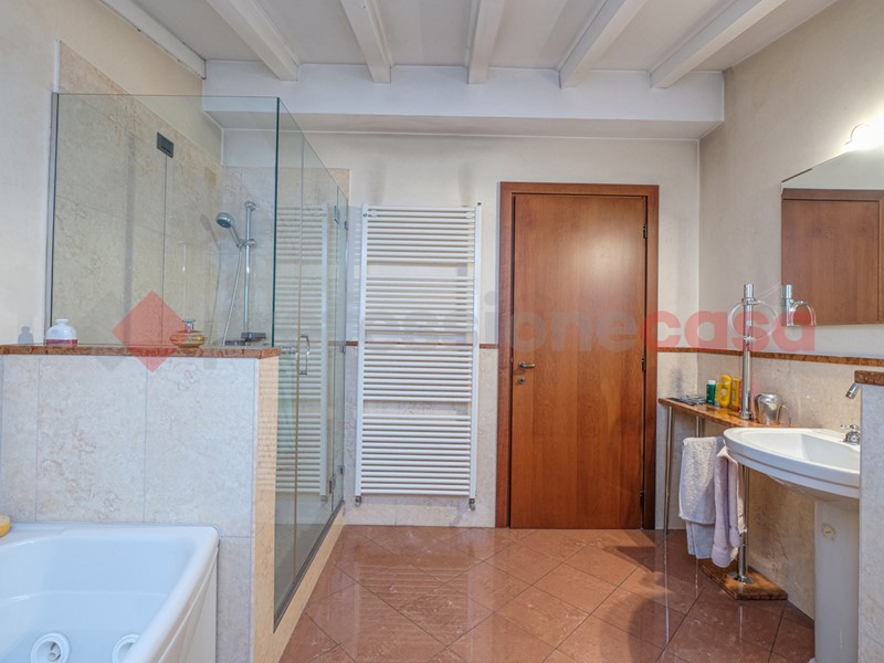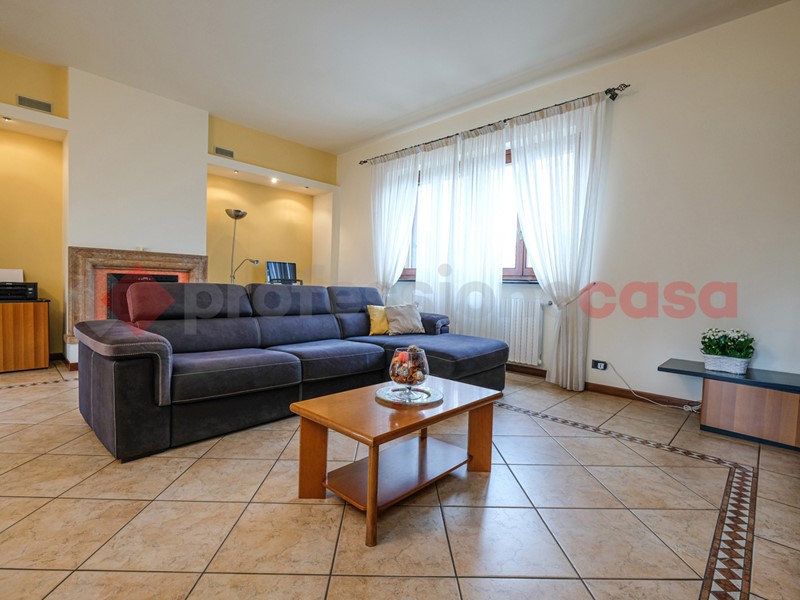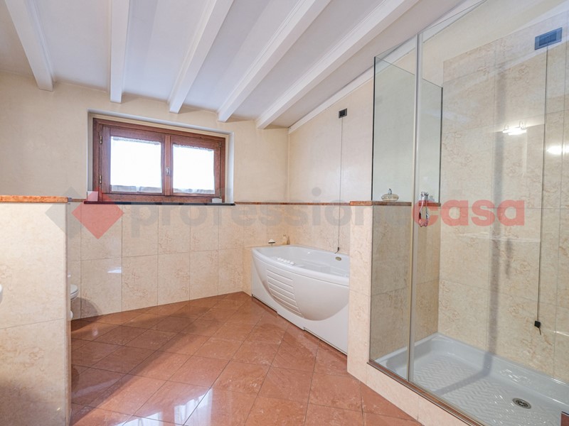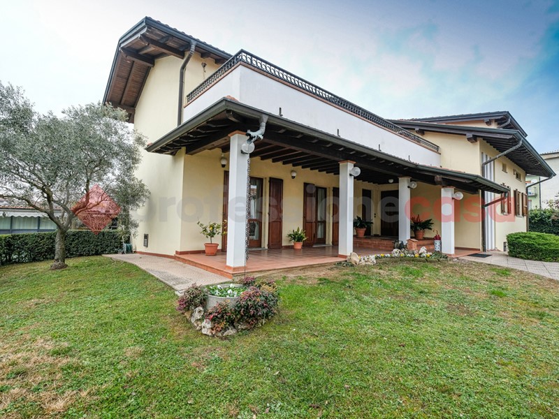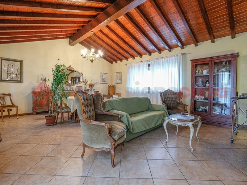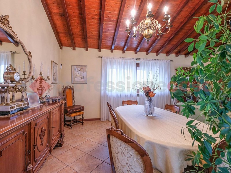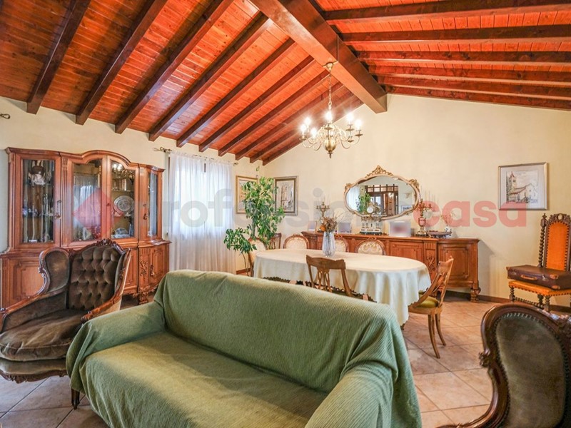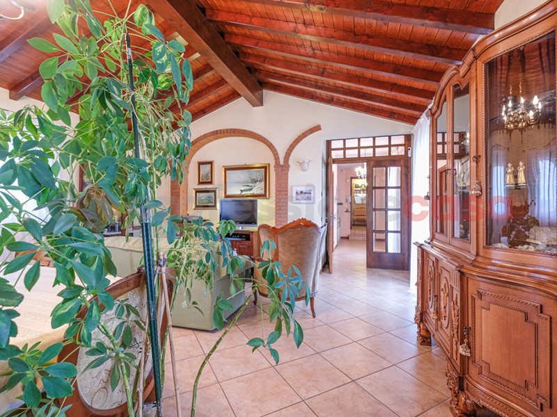 Salendo dal vano scala, che raccorda i tre livelli della villa, arriviamo al primo piamo dove troviamo un altro grazioso appartamento, splendidamente rifinito, con un salone mansardato molto caratteristico, rifinito con un bellissimo tetto in legno con travi a vista, la cucina è enorme?, camere, bagno, lavanderia ed un terrazzo molto grande completano l'abitazione.
