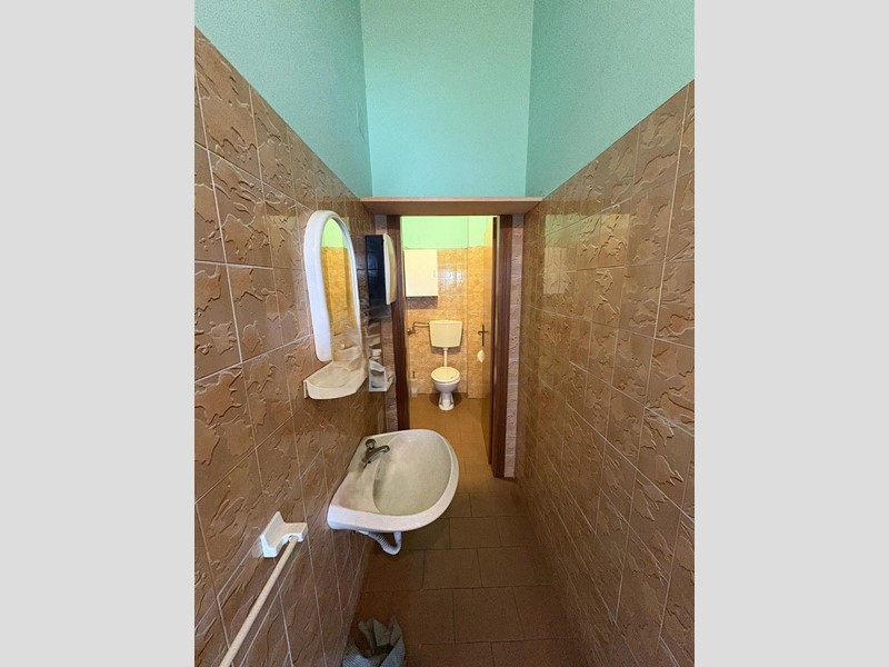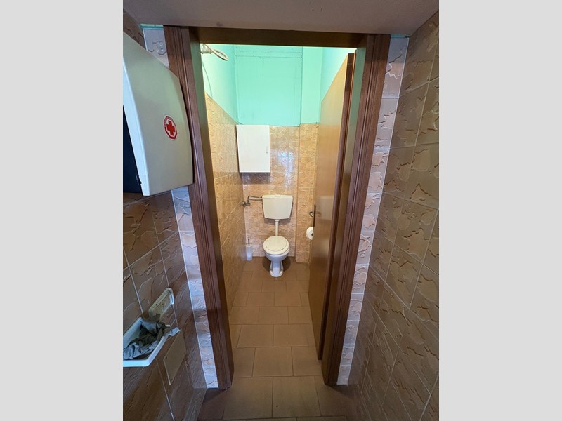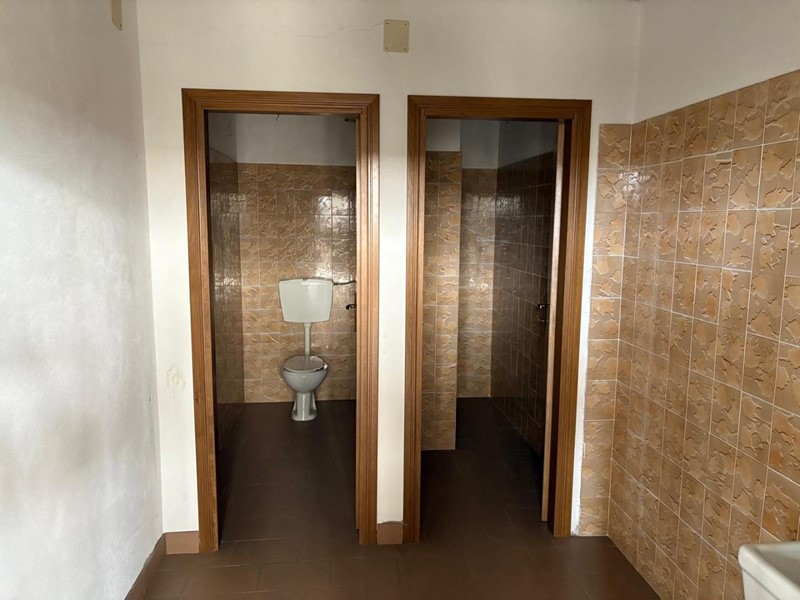 Al piano terra troviamo due ampie stanze: una comprendente un'ufficio dotato di frangi soli elettrici e bagno; l'altra, più ampia, comprende due grandi bagni di recente costruzione dotati di doccia.