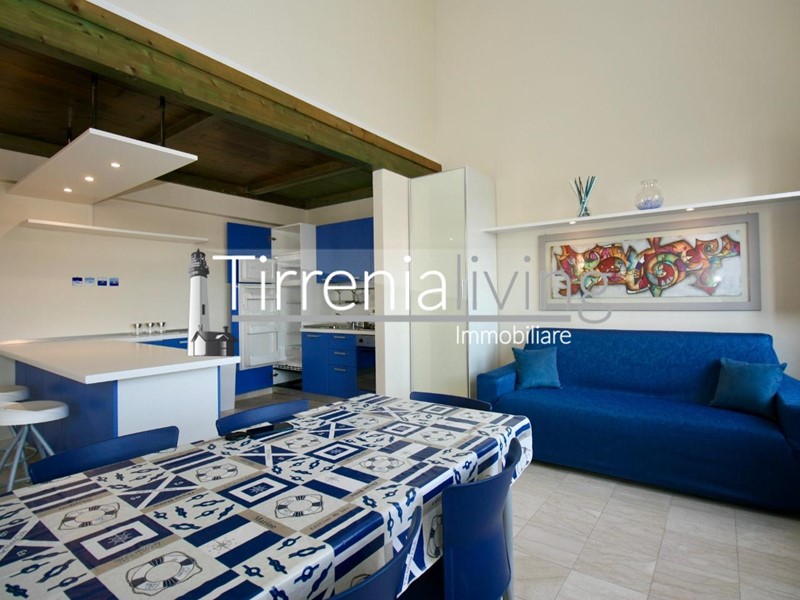 CALAMBRONE - DISPONIBILE PER LA STAGIONE ESTIVA - Direttamente sul mare con accesso diretto alla spiaggia proponiamo appartamento in ottime condizioni di manutenzione inserito in contesto signorile ed esclusivo con posto auto privato, arredamento nuovo, posto al secondo ed ultimo piano servito da ascensore composto da: ingresso in ampio e luminoso soggiorno con angolo cottura e divano letto, bagno con doccia e lavatrice; al piano soppalco camera matrimoniale, due letti singoli e ulteriore servizio. L'appartamento è corredato inoltre di pentole, stoviglie, utensili da cucina, aria condizionata e televisore. Posti letto 6