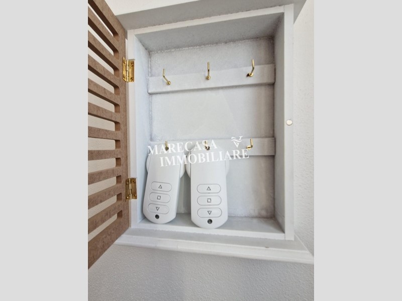 E' costituito da un'entrata in disimpegno, cucina abitabile, sala, camera matrimoniale, cameretta e bagno finestrato. Presenti due terrazzi, posto auto privato dentro al cancello automatico e giardino condominiale.