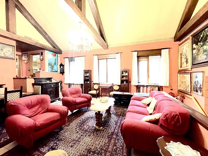Gli elementi d'epoca sono valorizzati da soffitti con travi a vista, pavimenti in parquet pregiato, dettagli architettonici originali.