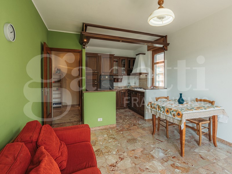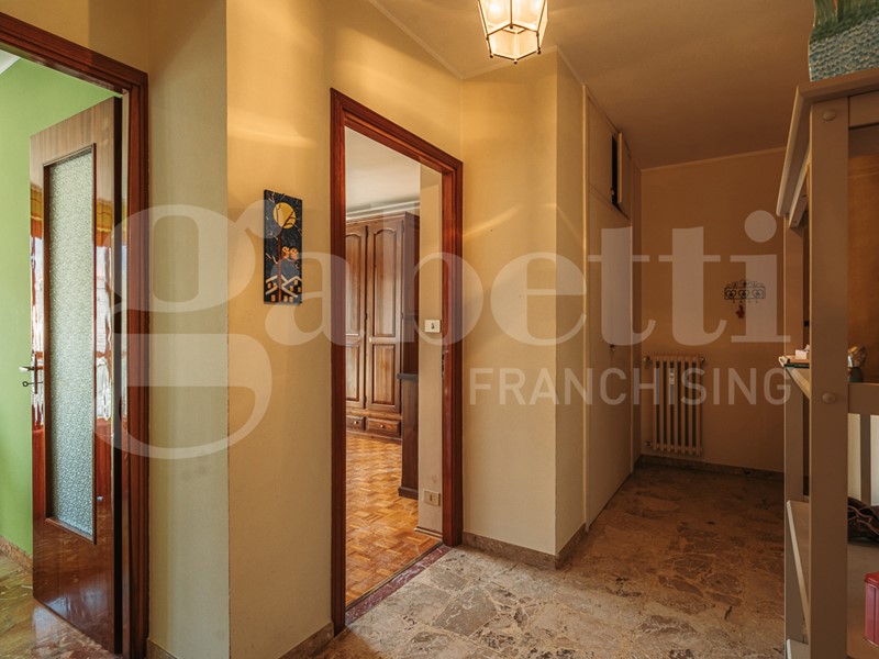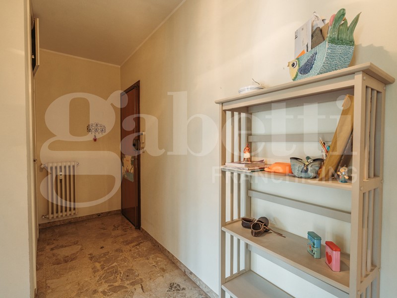 L'immobile mantiene il layout classico dell'epoca di costruzione, con un ingresso su corridoio funzionale, dove trova posto un pratico ripostiglio a tutta altezza. La zona giorno è stata resa più ampia e luminosa grazie alla parziale demolizione di un tramezzo, creando così un ambiente accogliente e ben sfruttabile.