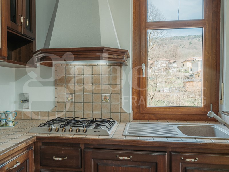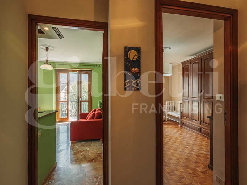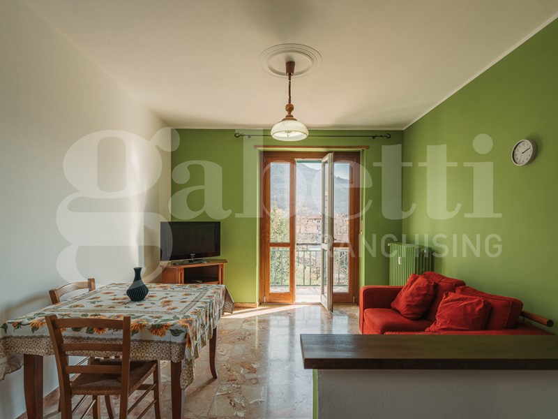 Il balcone, affacciato sul fondovalle, è stato completamente rifatto, offrendo uno spazio esterno perfetto per godere del panorama.