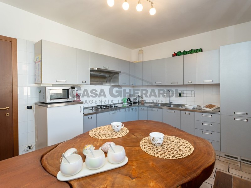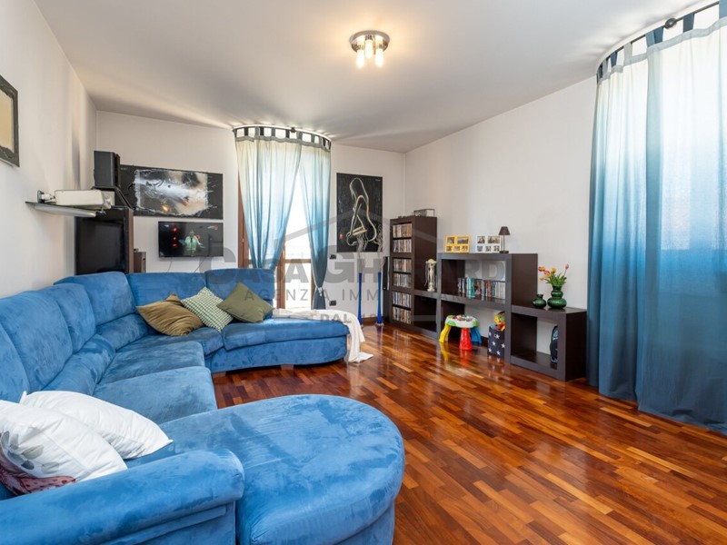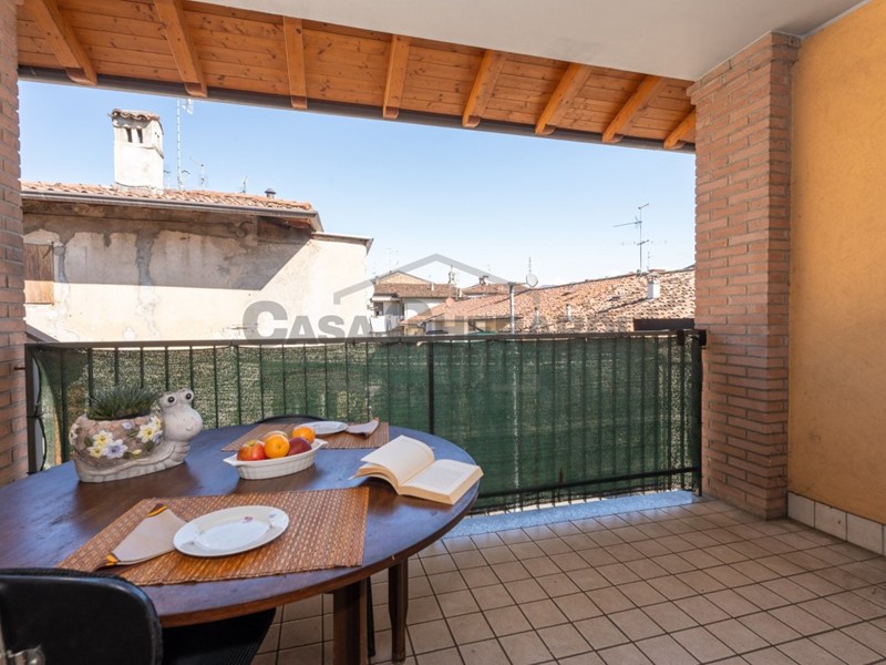 In un contesto tranquillo e riservato di sole otto unità, nel centro paese, proponiamo un appartamento accogliente e ben distribuito, che si apre al primo piano e si sviluppa su tre livelli. La zona giorno è luminosa e spaziosa: un ampio soggiorno rifinito in parquet si affaccia su un terrazzo coperto, ideale per godersi momenti di relax. La cucina è abitabile e si apre su un secondo terrazzo vivibile, perfetto per pranzi all’aperto. Al piano superiore, nella suggestiva zona sottotetto con travi a vista e finiture curate, troviamo due ambienti versatili: attualmente utilizzati come camera matrimoniale, con affaccio su un terrazzo coperto, e come camera singola, con accesso a un balcone. Completa il piano un secondo bagno. La proprietà dispone di riscaldamento autonomo, box doppio in lunghezza e ha spese condominiali pari a 85 euro al mese. Classe energetica D."