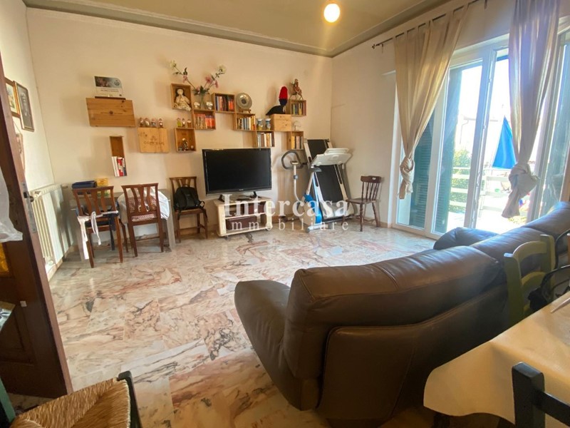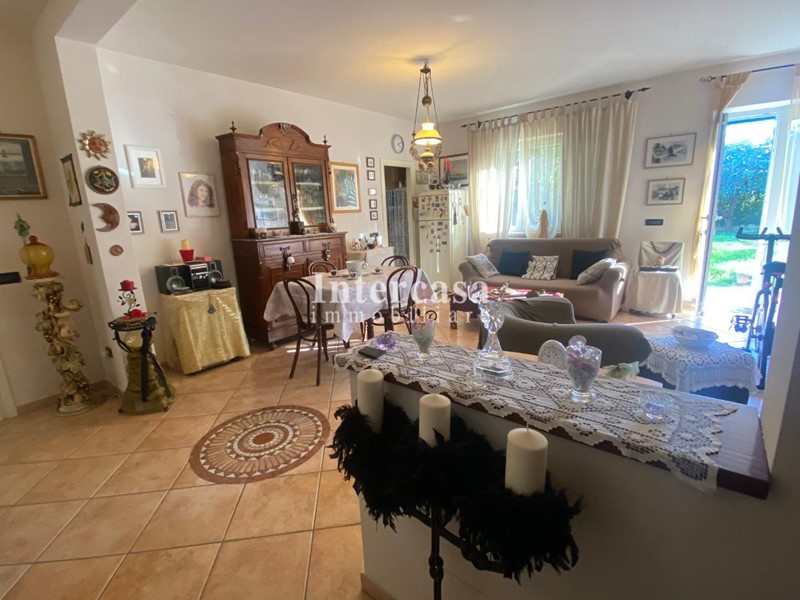 Salendo al primo piano, l'appartamento offre un ampio soggiorno con balcone, un tinello con angolo cottura, due camere matrimoniali e un bagno. La villa è circondata da un incantevole giardino di 1.000 m² con due ingressi carrabili, offrendo la possibilità di dividere la proprietà in due porzioni separate. Le facciate e gli infissi sono stati recentemente rifatti grazie alle agevolazioni del 110%, garantendo efficienza energetica e comfort.