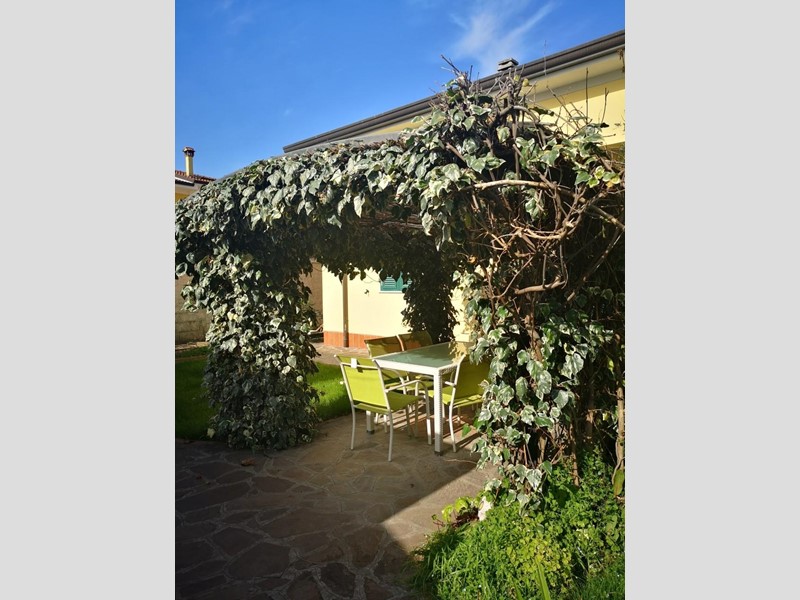 in zona residenziale e tranquilla, vendesi porzione di bifamiliare disposta su un unico livello con giardino privato e dependance.