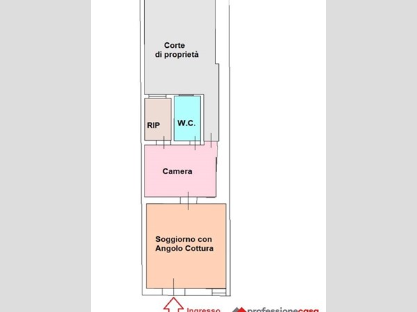 Ingresso su Soggiorno e Angolo Cottura, una Camera, Bagno e Ripostiglio entrambi finestrati.